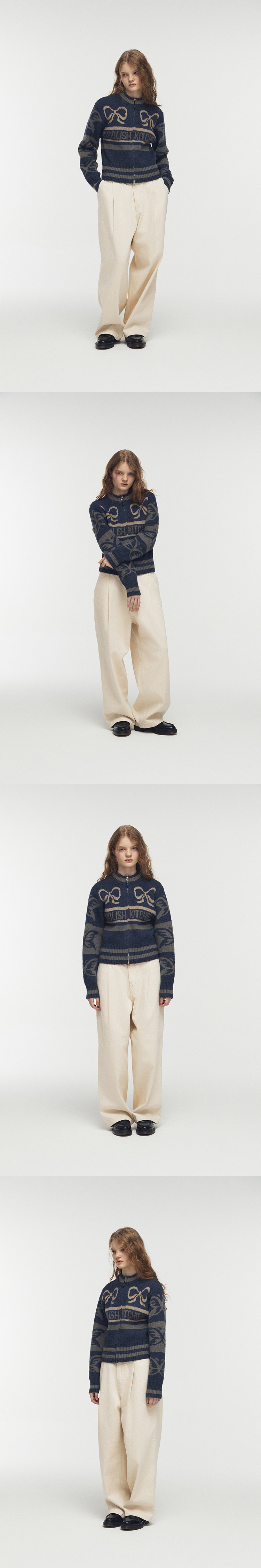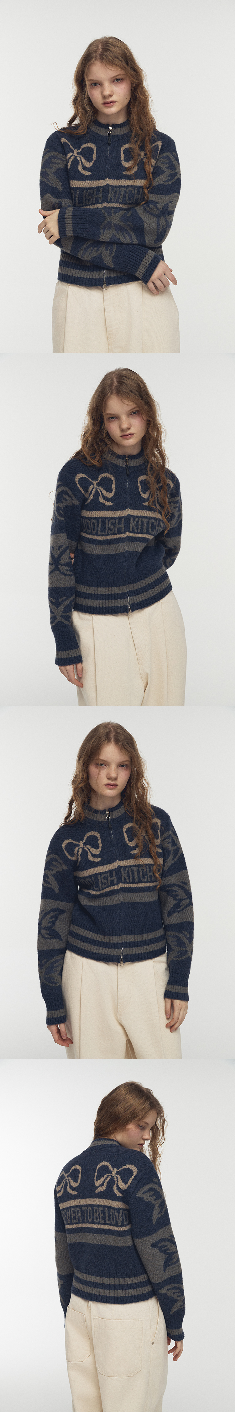 우먼즈 크롭 베어프렌즈 엠보자수 후드 오트밀네이비(FCB3TS359W)