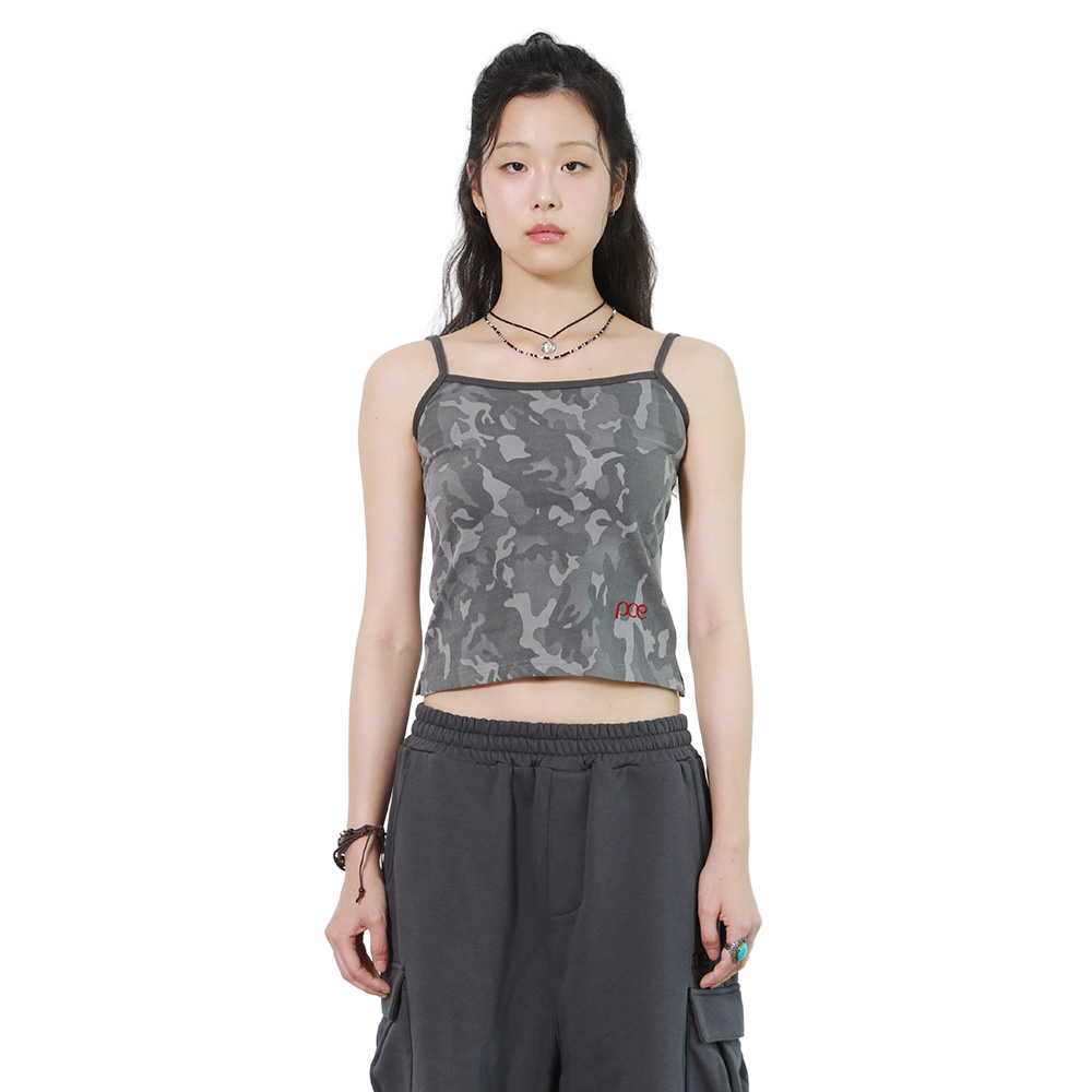 회색 도트 패턴이 더해진 블랙 소재 위로 언밸런스한 핀턱과 밑단 스트랩 디테일로 입체적인 포인트를 더한 나시입니다.