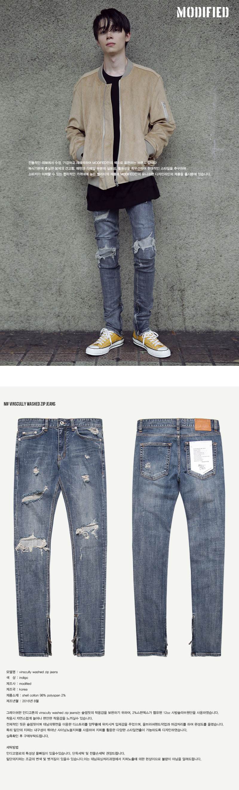 SP 서클 워싱 데님 팬츠 블루