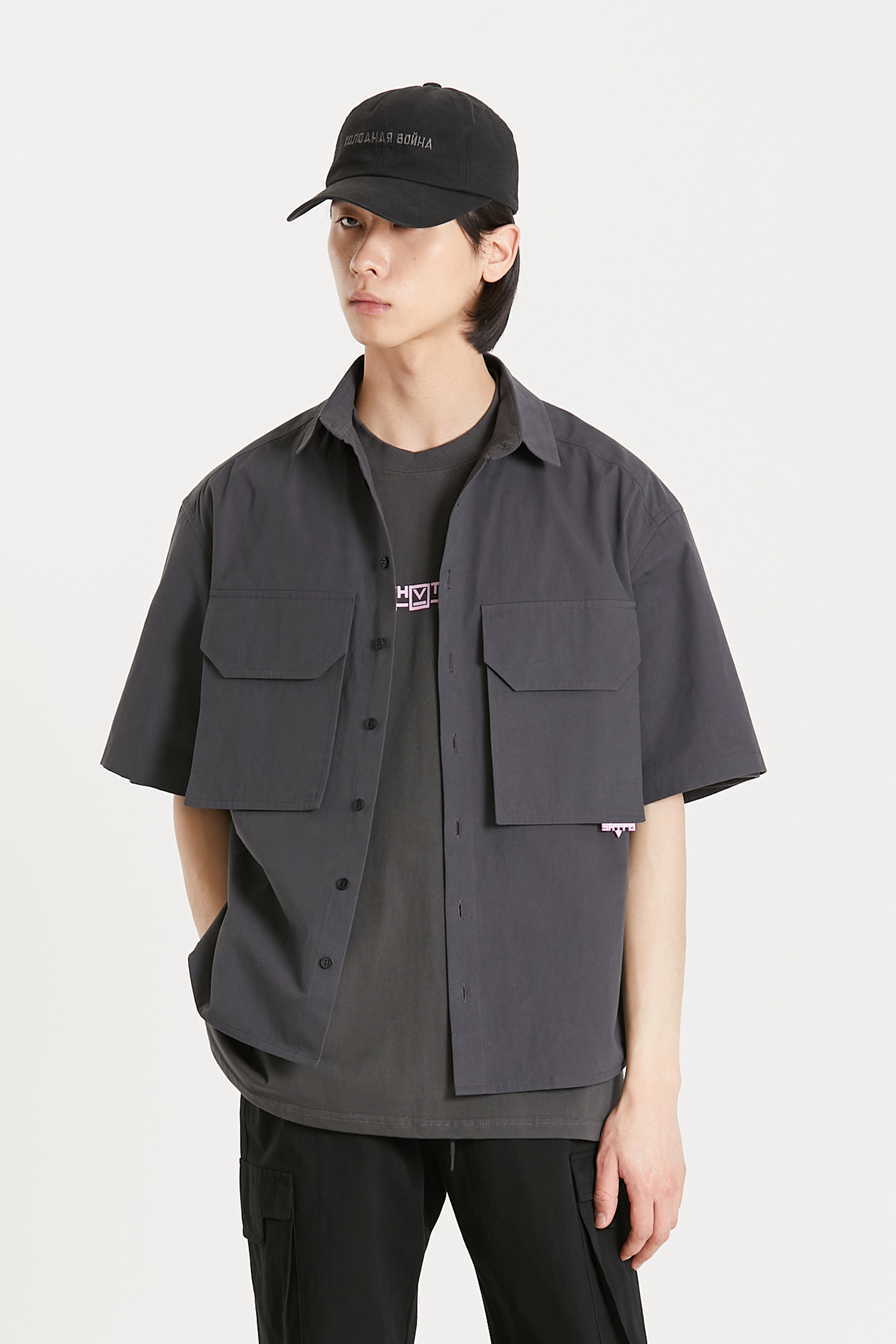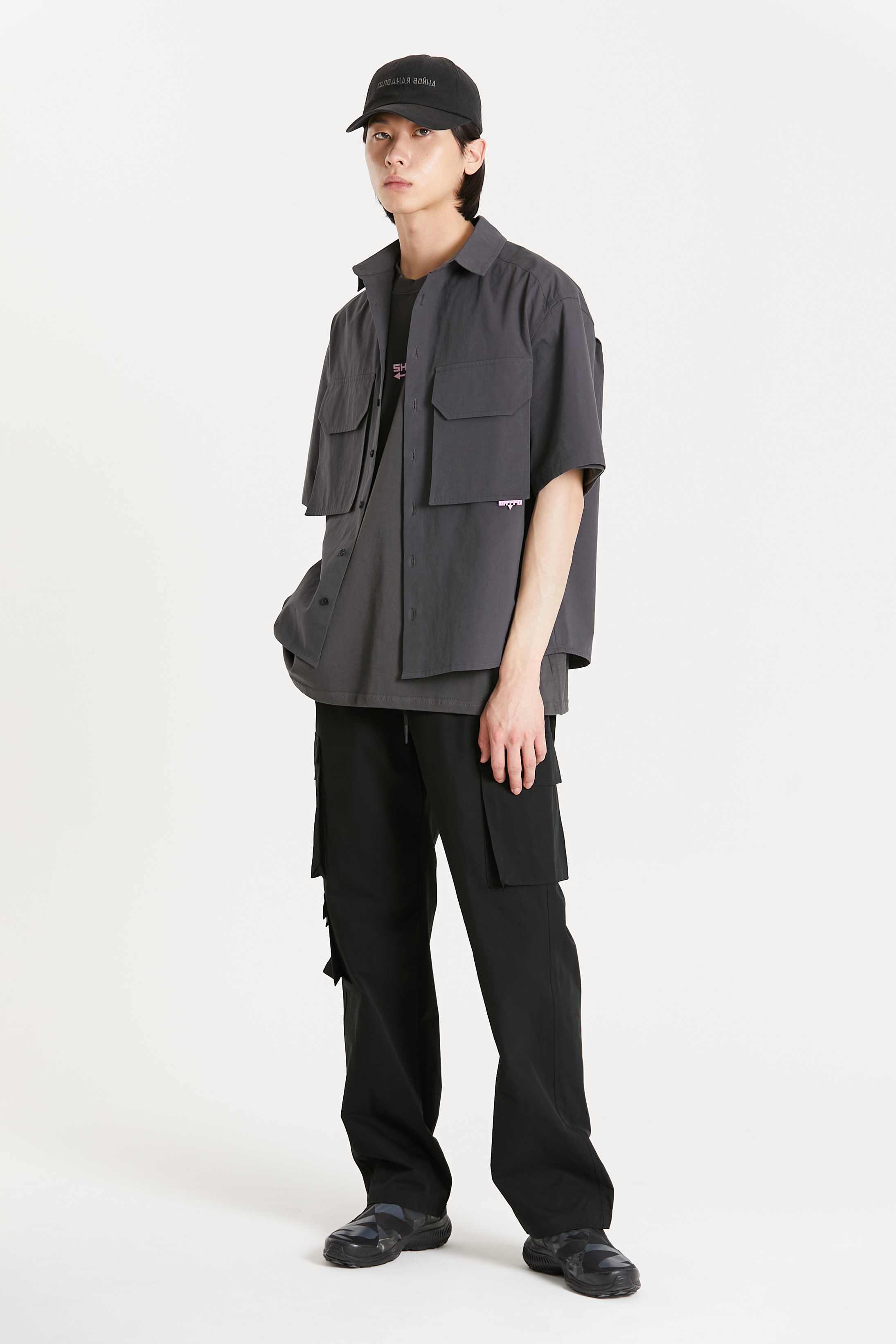 WIDE MULTI POCKET NYLON SHIRT_BEIGE