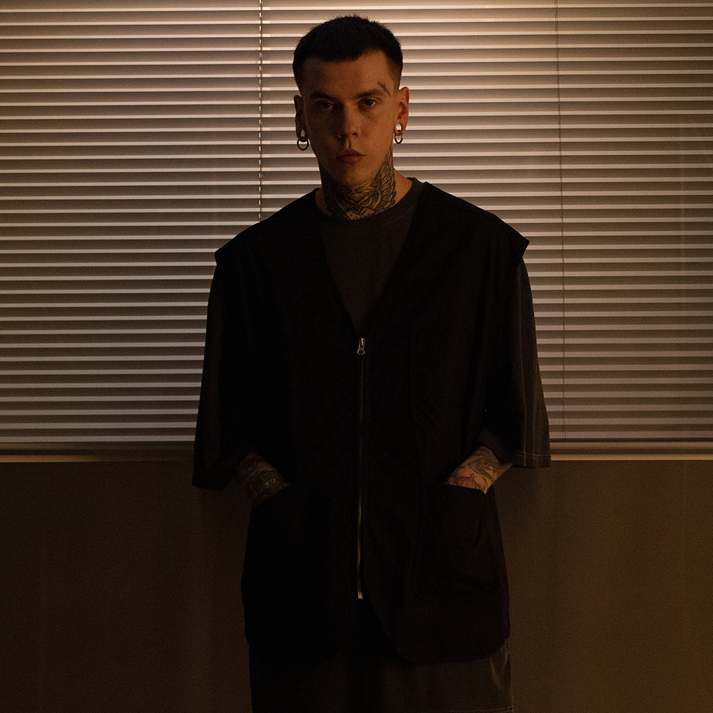 Patch Pocket Pigment Cotton Vest ((Charcoal))