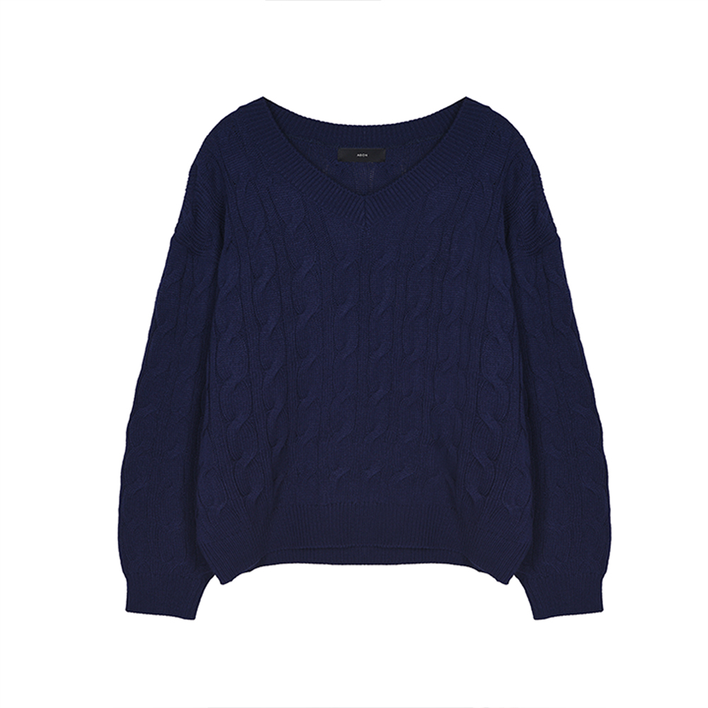 Two-tone Winter Stars Round Neck Sweater_BLACK