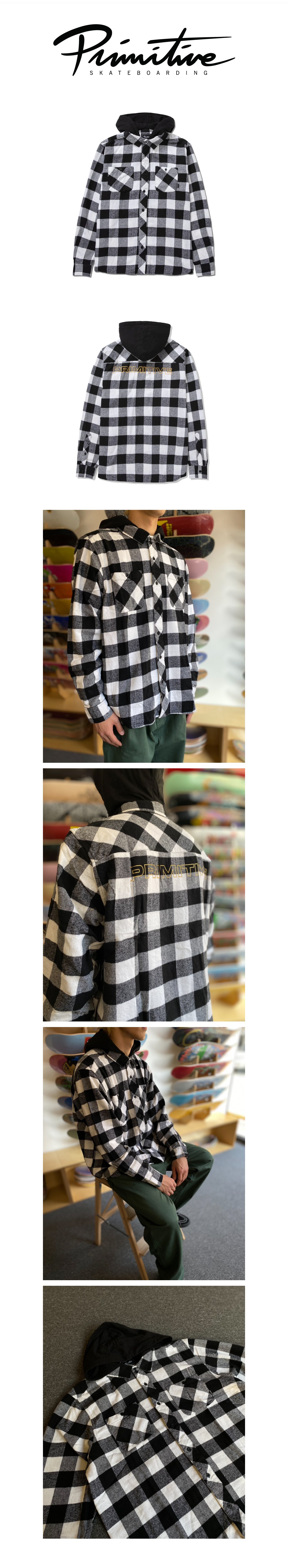 Cross Cut-Off Tartan Check Hoodie Shirt ((Navy))