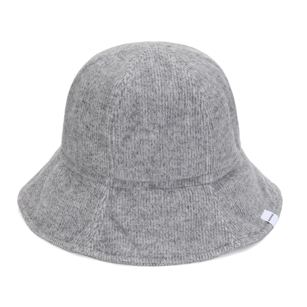 스트링 디테일로 안정감 있게 착용되는 니트 비치 버킷햇