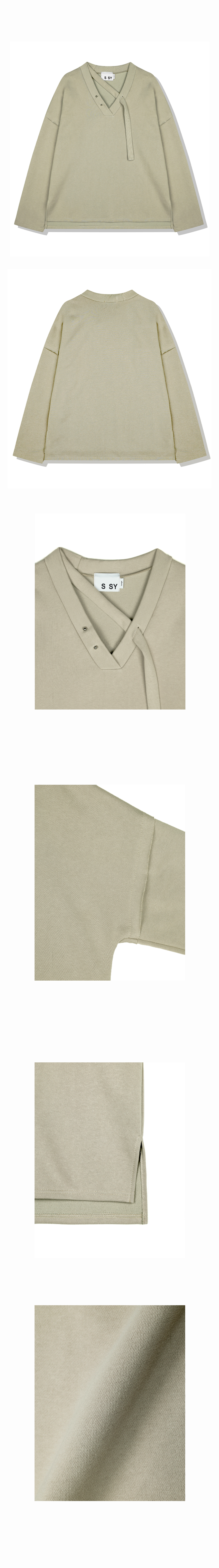 * V넥 부분 피어싱 포인트로 SSY만의 컨템포러리 무드를 느낄 수 있음