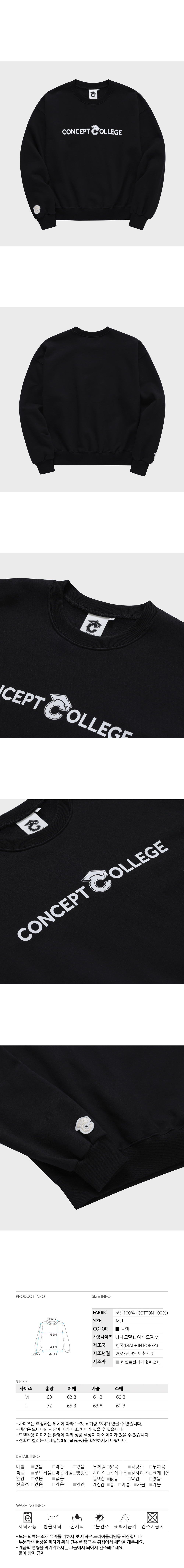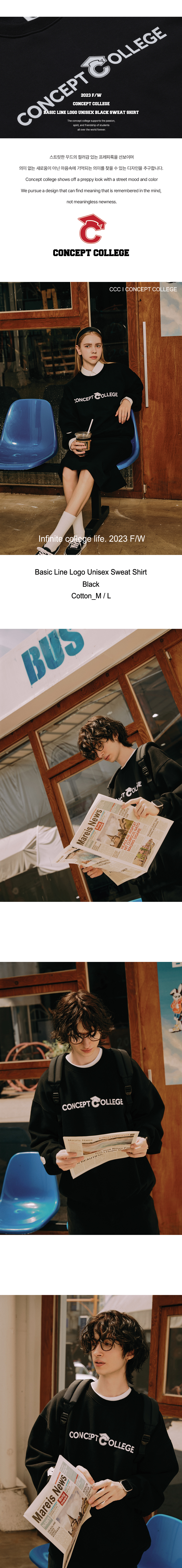 컨셉트 컬리지의 베이직 로고가 깔끔하게 디자인된 스웨트셔츠입니다.