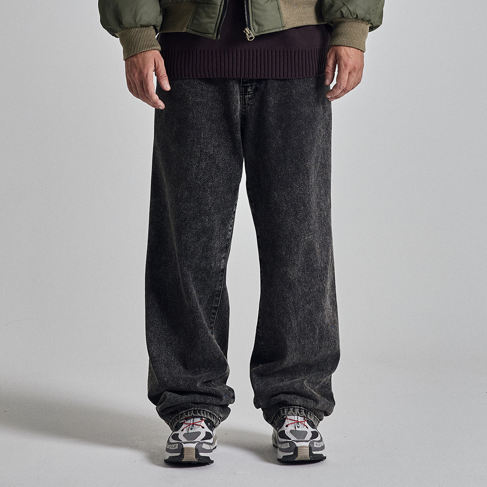 뒷포켓 D자수가 포인트인 와이드 데님팬츠