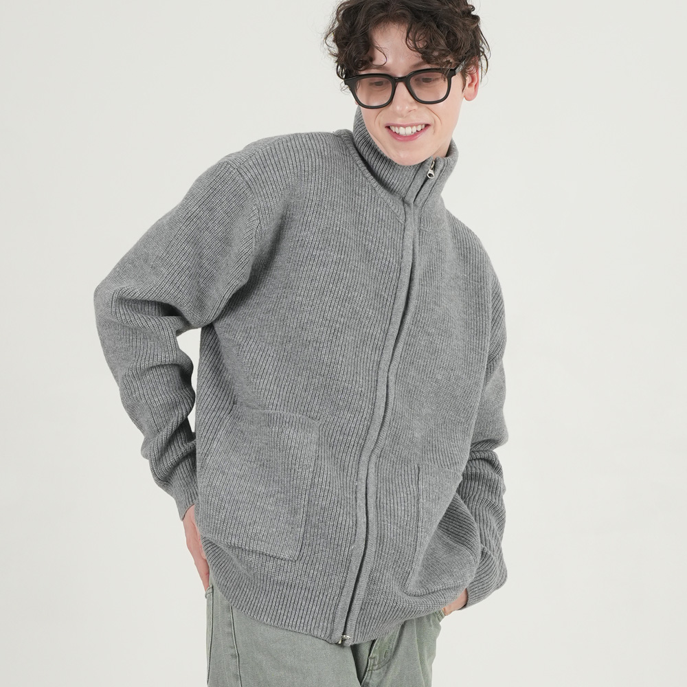 SP Twin Meshed Knit Zip-Up Gray