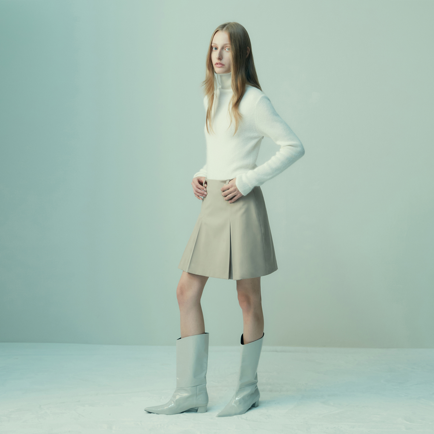양쪽이 다른 주름 턱 디테일을 앞뒤로 넣어 사방으로 착용이 가능하며 원하는 무드로 맞춰 다양한 스타일링을 하실 수 있습니다.