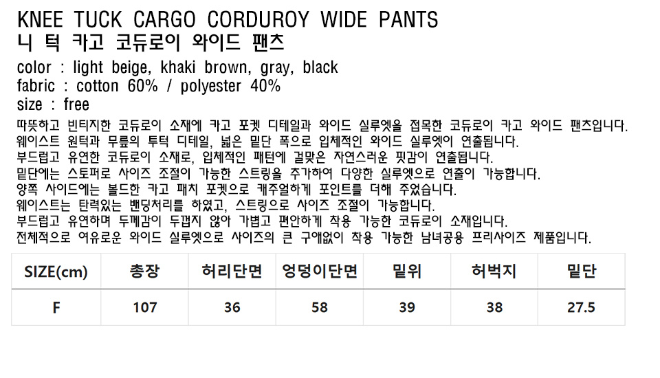 Cargo Bonding Corduroy Wide Pants ((Sand))