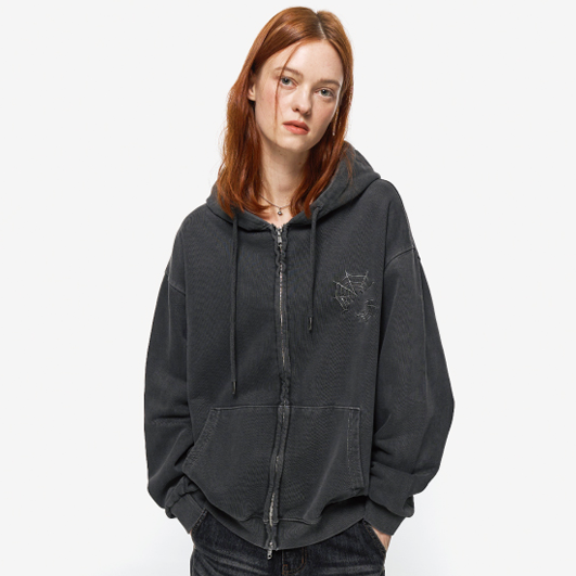 2-WAY Skirt Sleeve Pigment Hoodie Zip-up Smoke Black