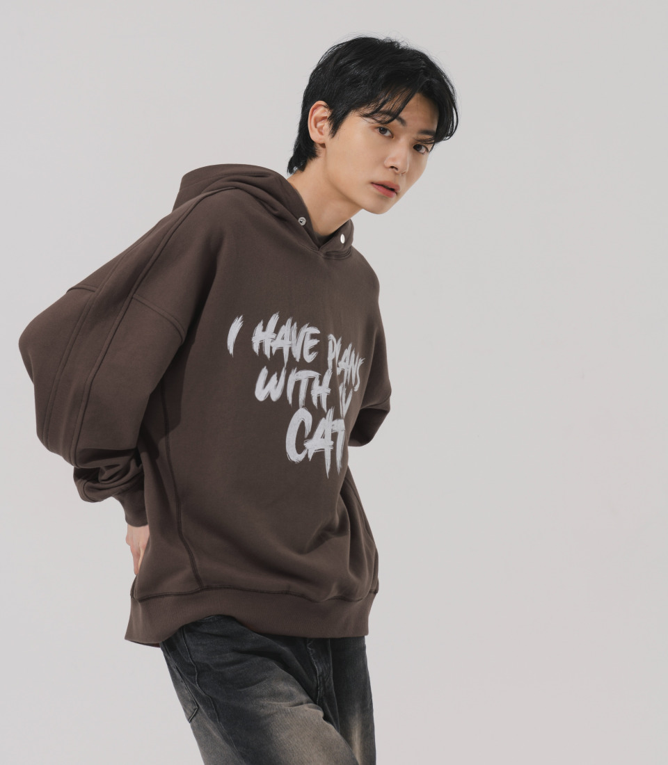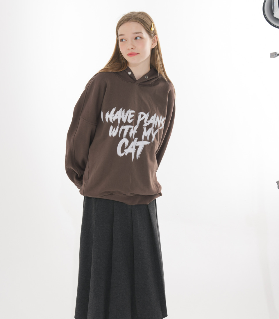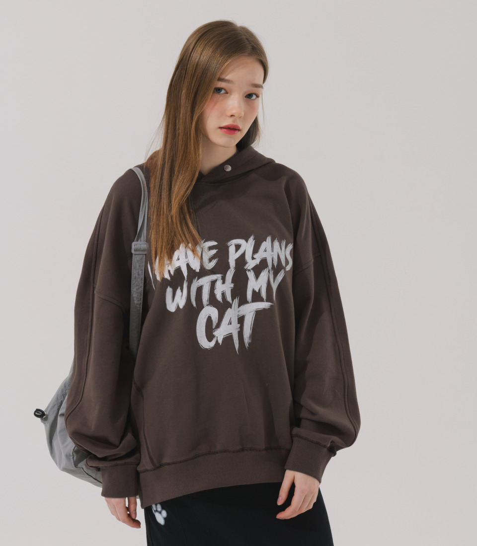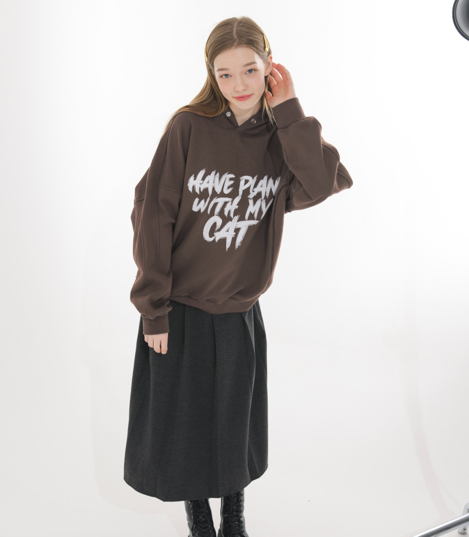 STAR CAT 오버핏 후드 티셔츠[카키]