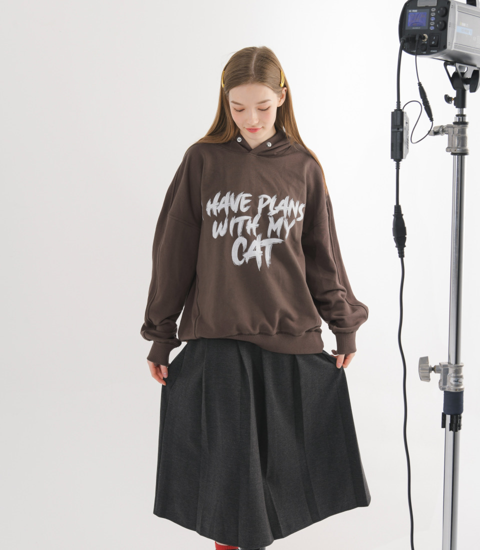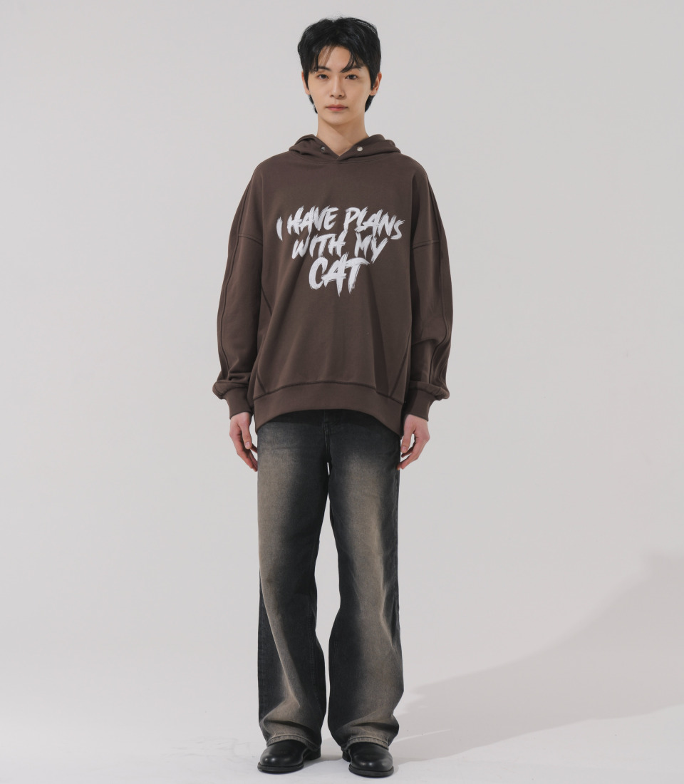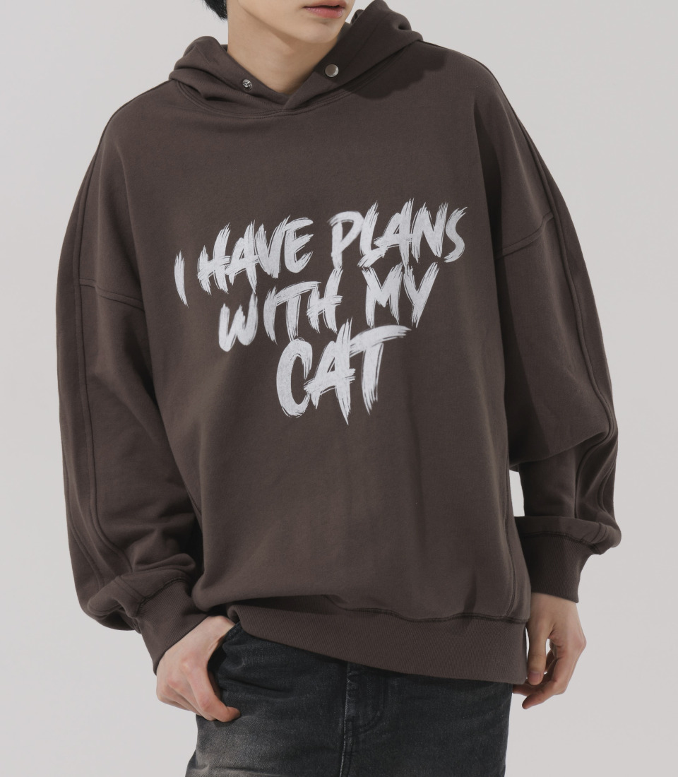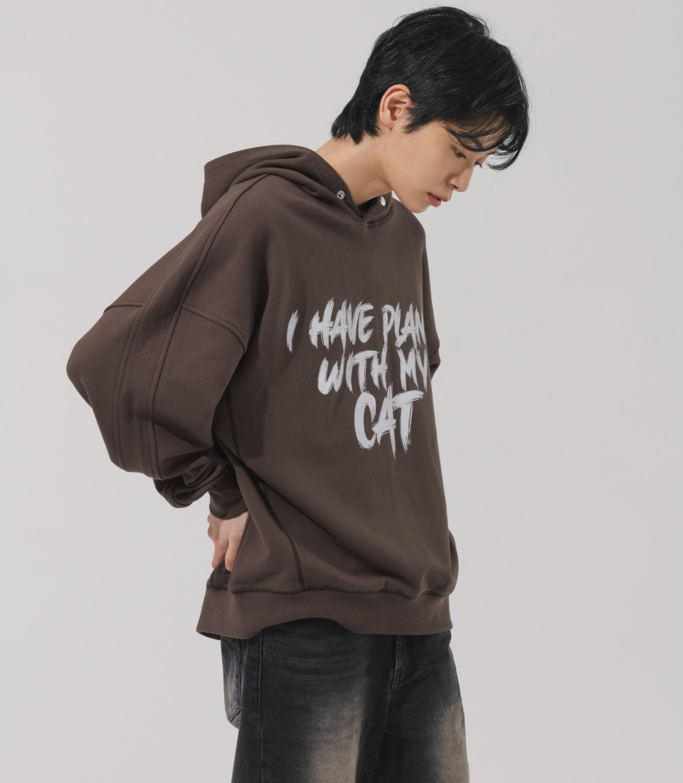 STAR CAT 오버핏 후드 티셔츠[카키]