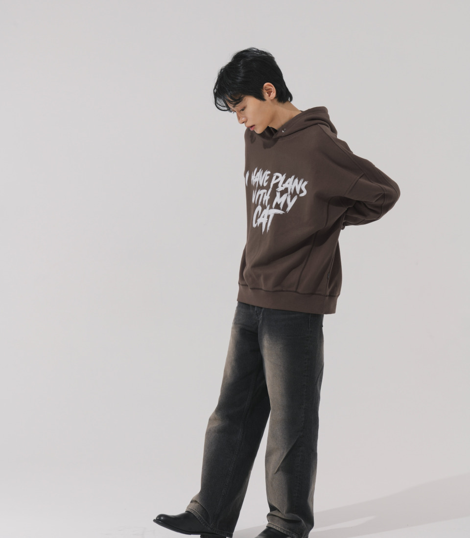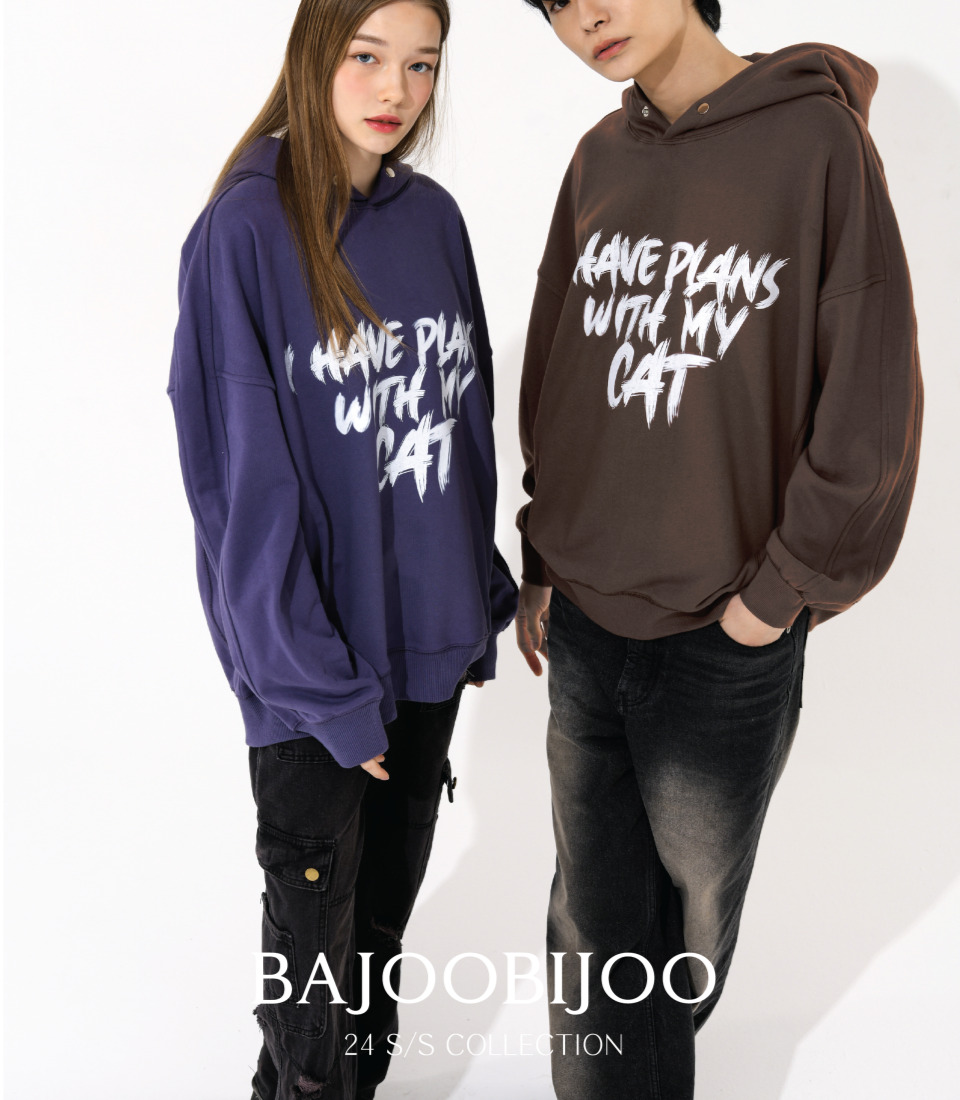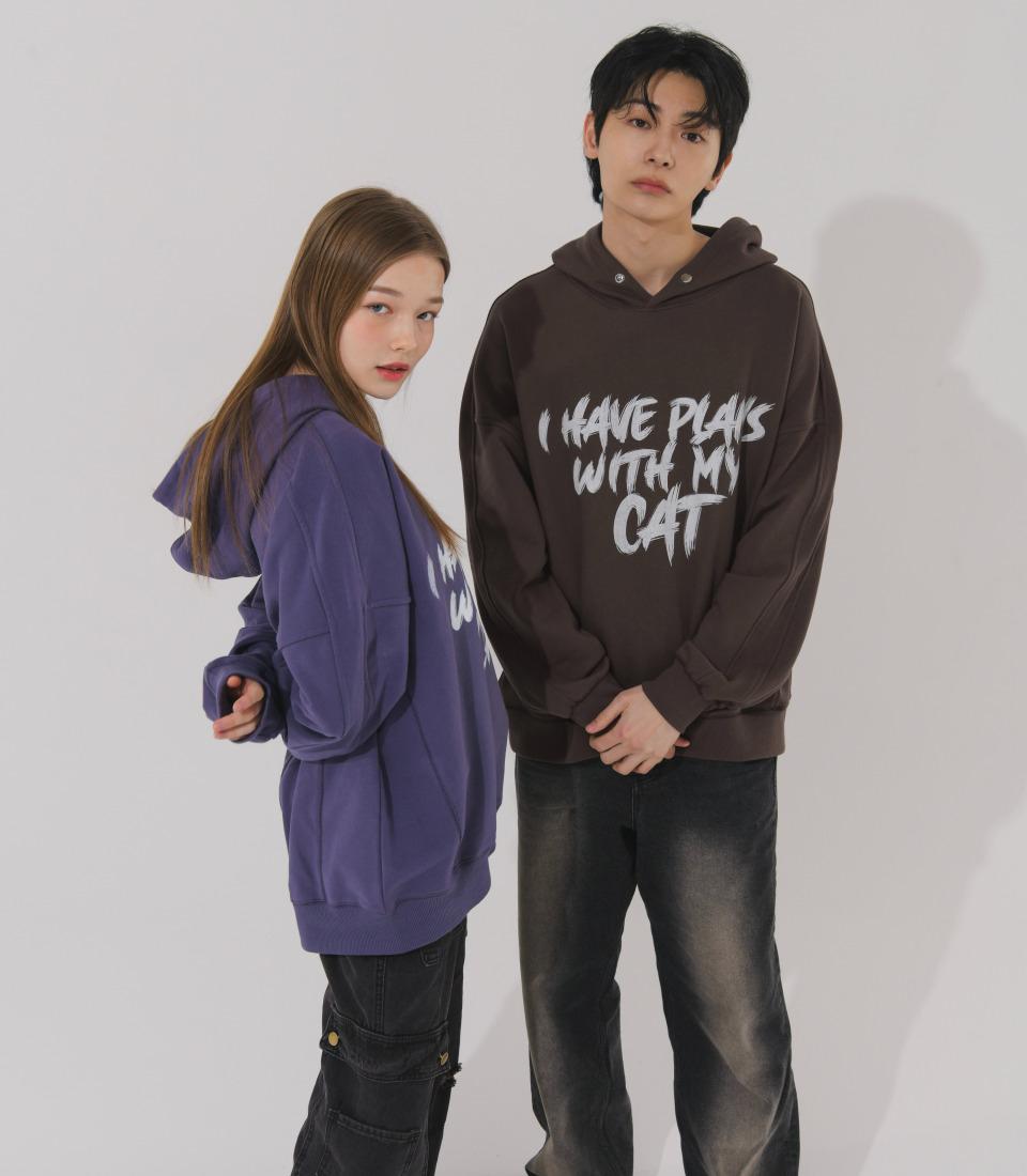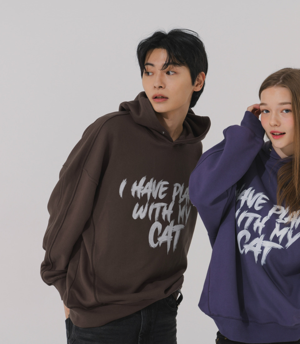 STAR CAT 오버핏 후드 티셔츠[카키]