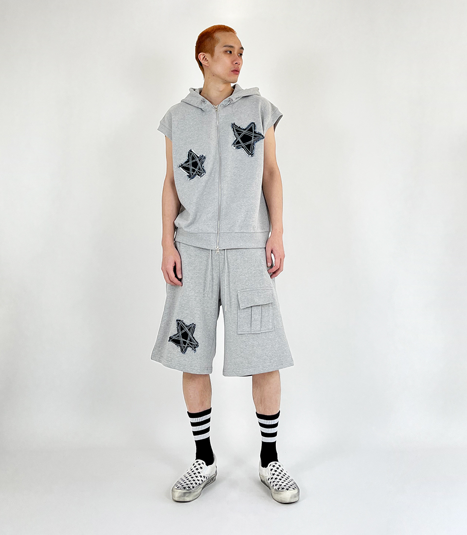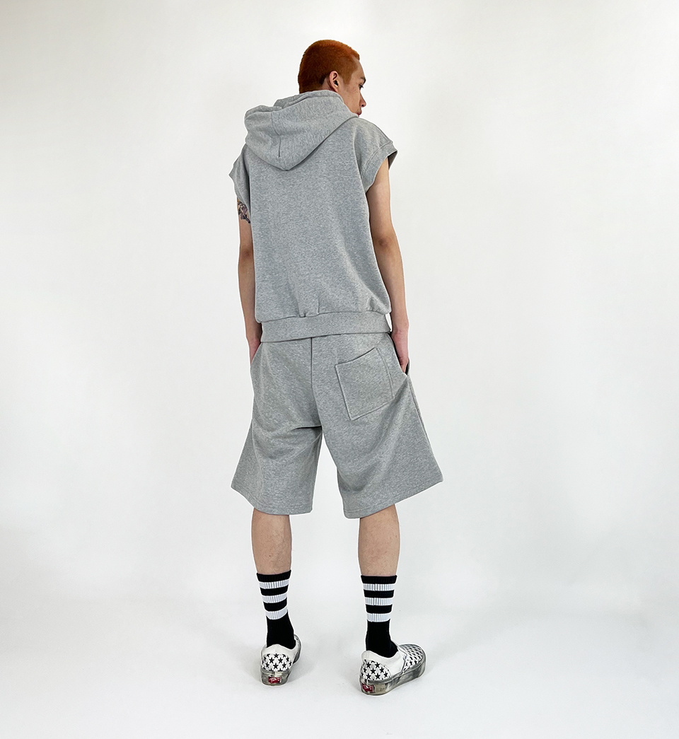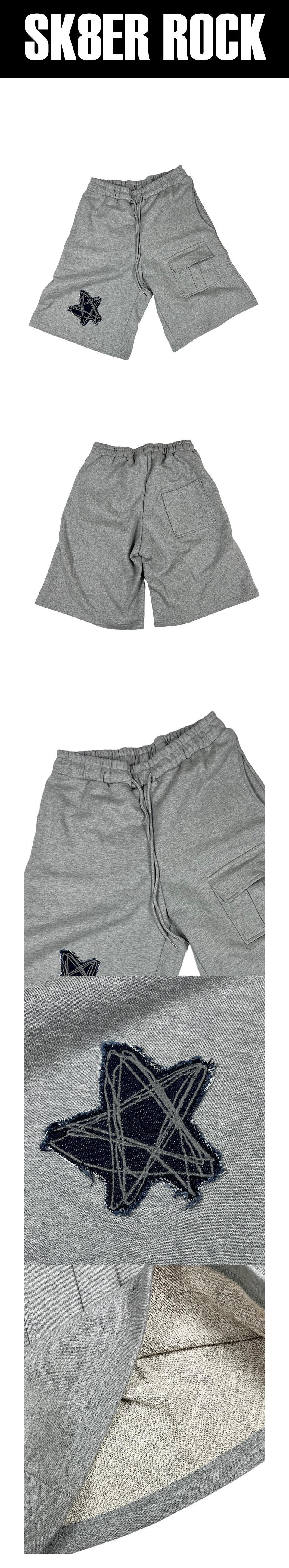 Layered Cross Painting Bermuda Shorts ((melange gray))