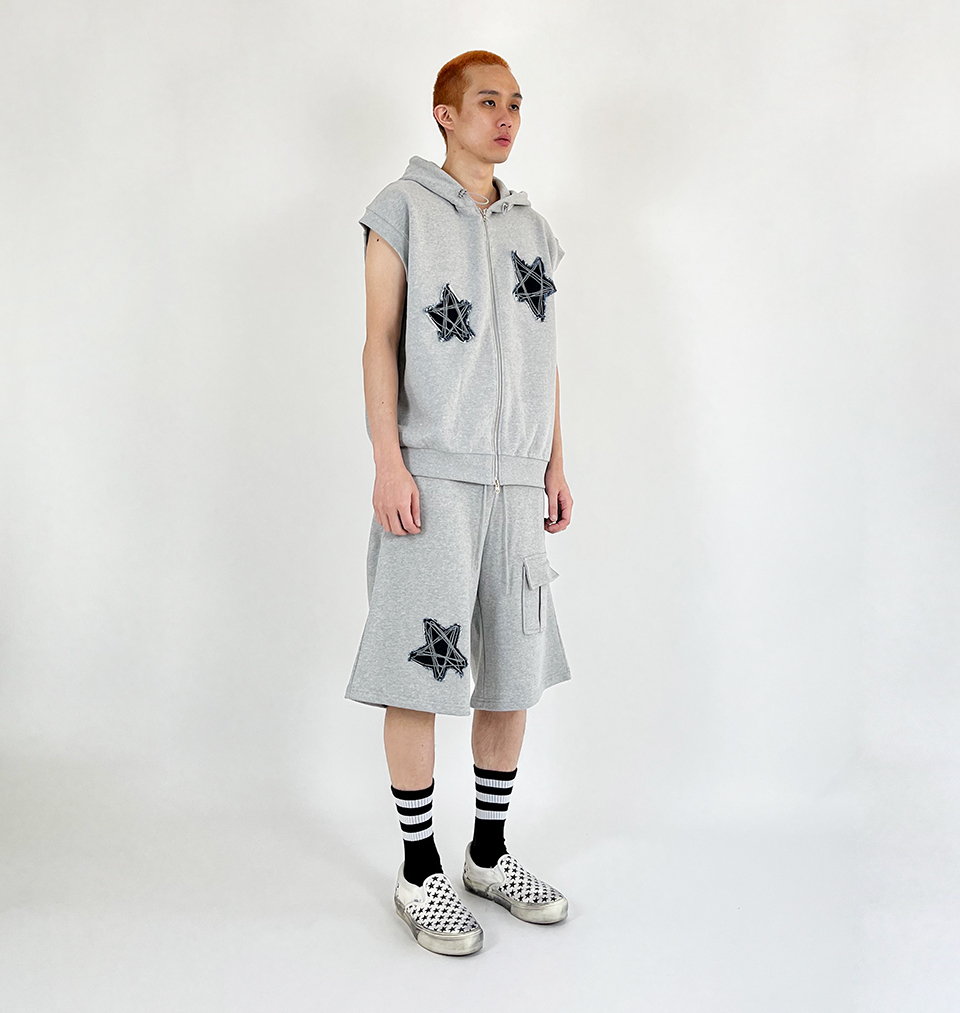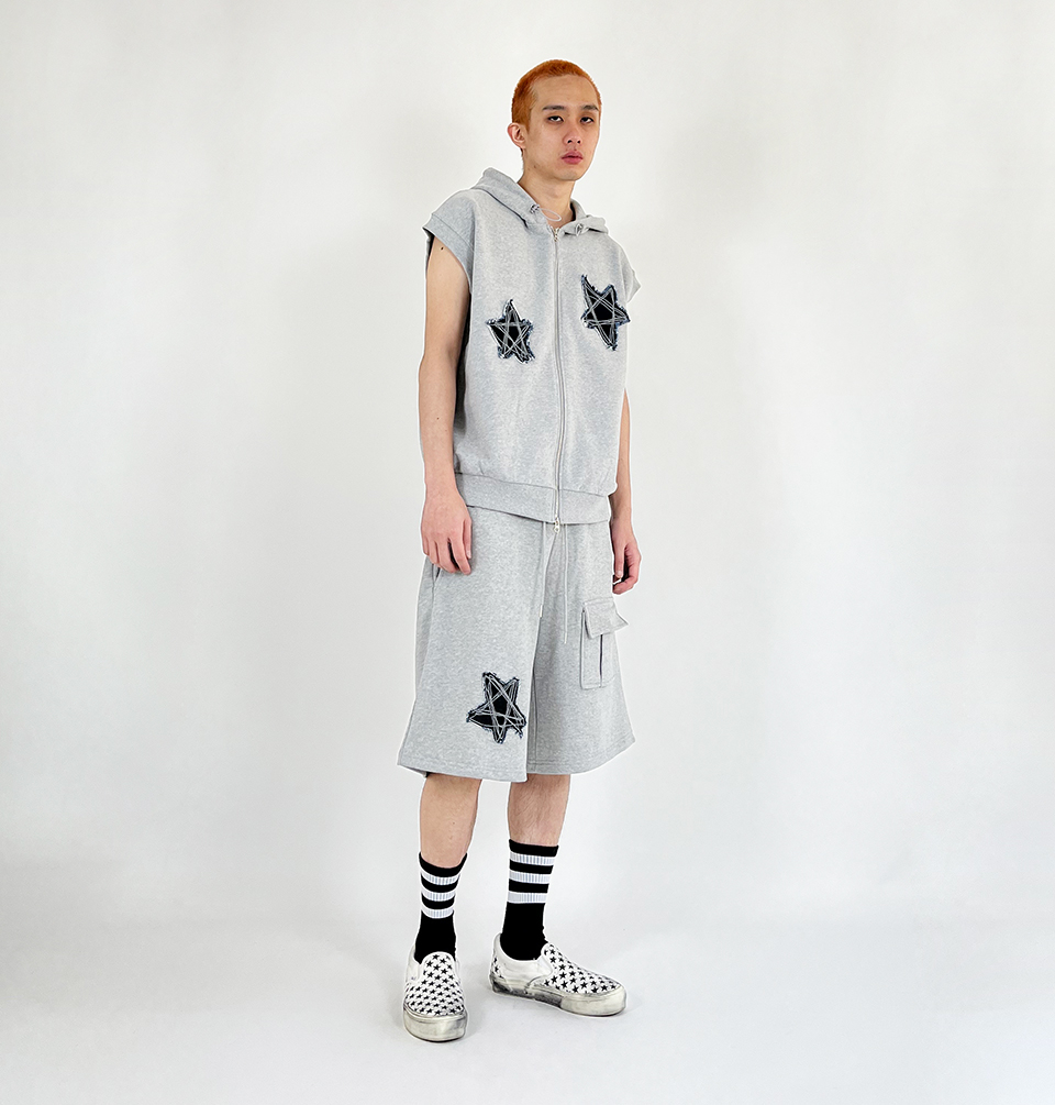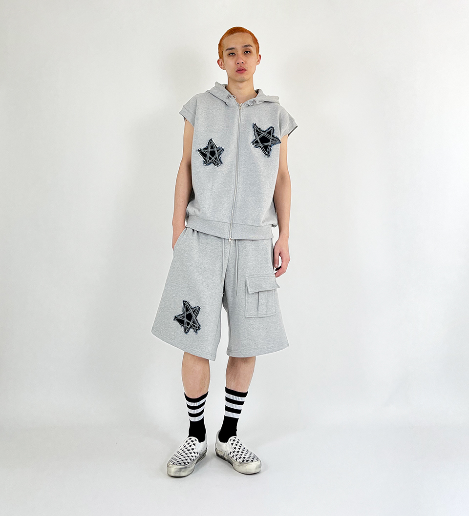 Layered Cross Painting Bermuda Shorts ((melange gray))