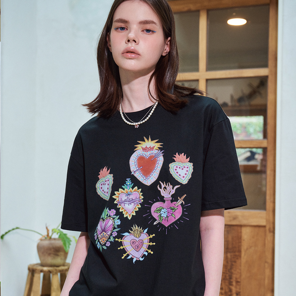 가벼운 소재로 그래픽이 특징인 스트릿 캐쥬얼 반팔티셔츠