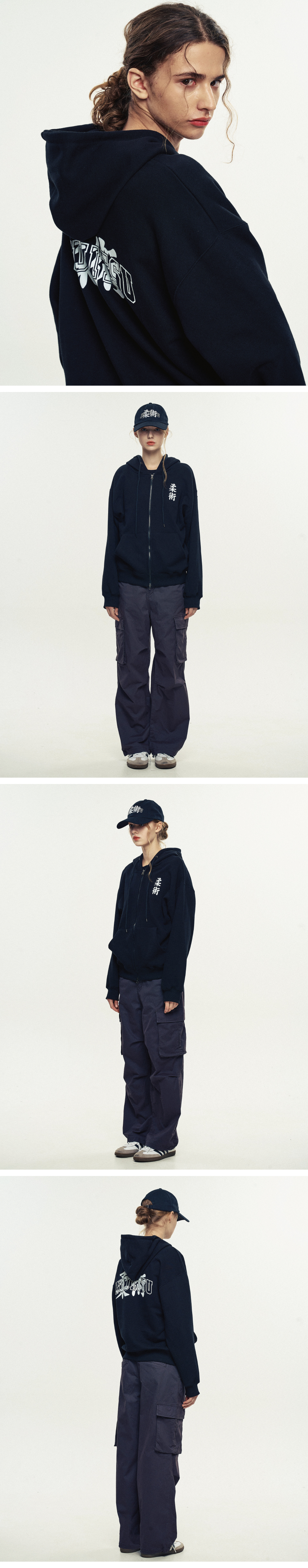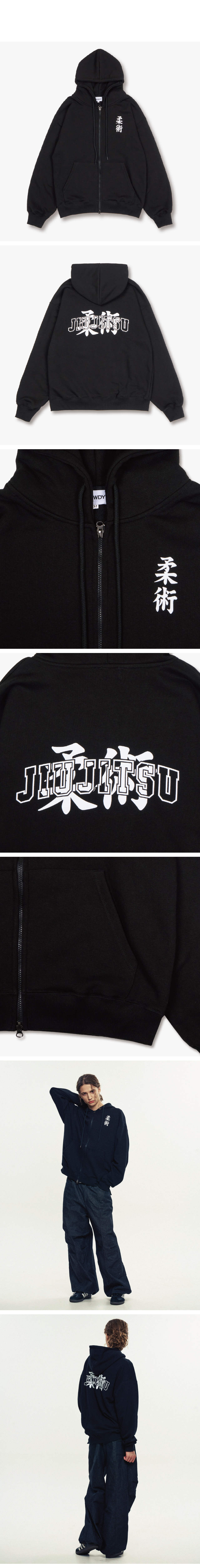 JiuJitsu 유술(柔術) Typo Zip-up Hoodie