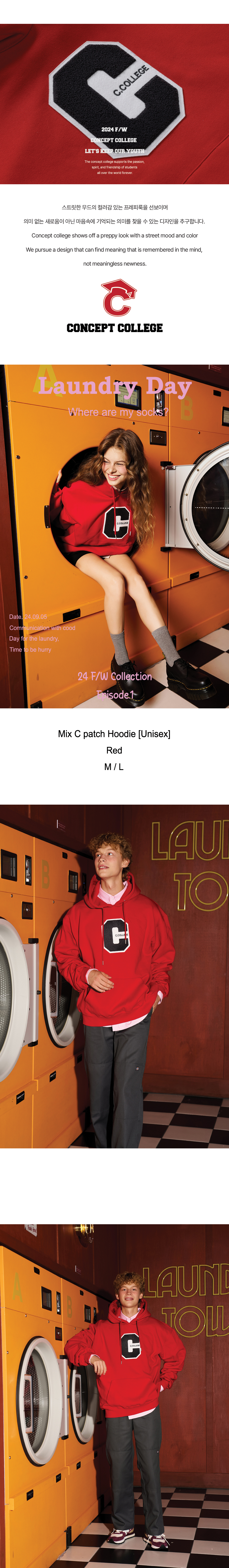 컨셉트 컬리지의 믹스 디자인된 빅C패치를 유니크하게 디자인한 남녀공용 후디입니다.