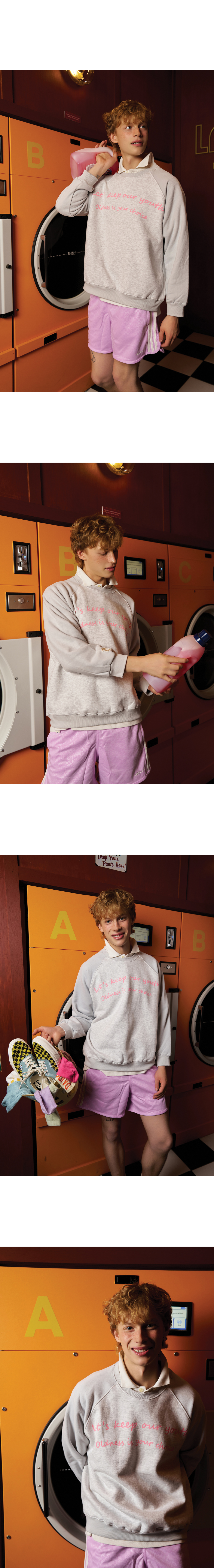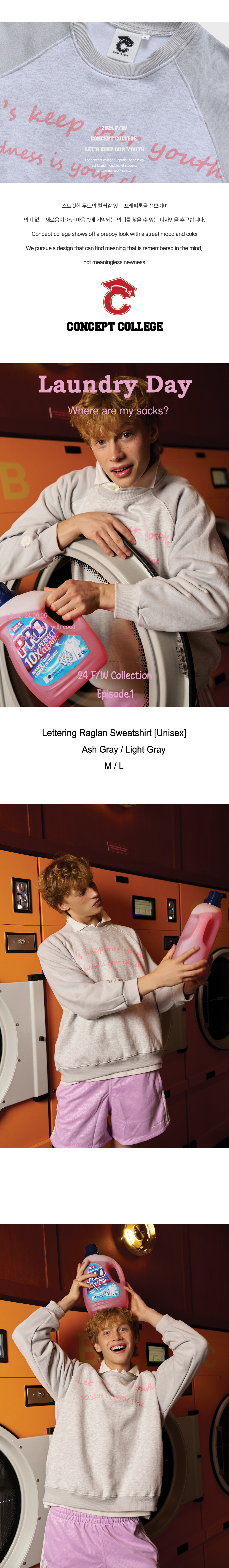 컨셉트 컬리지에서 독자적으로 패턴을 개발한 래글런 스웨트 셔츠로 착용 시