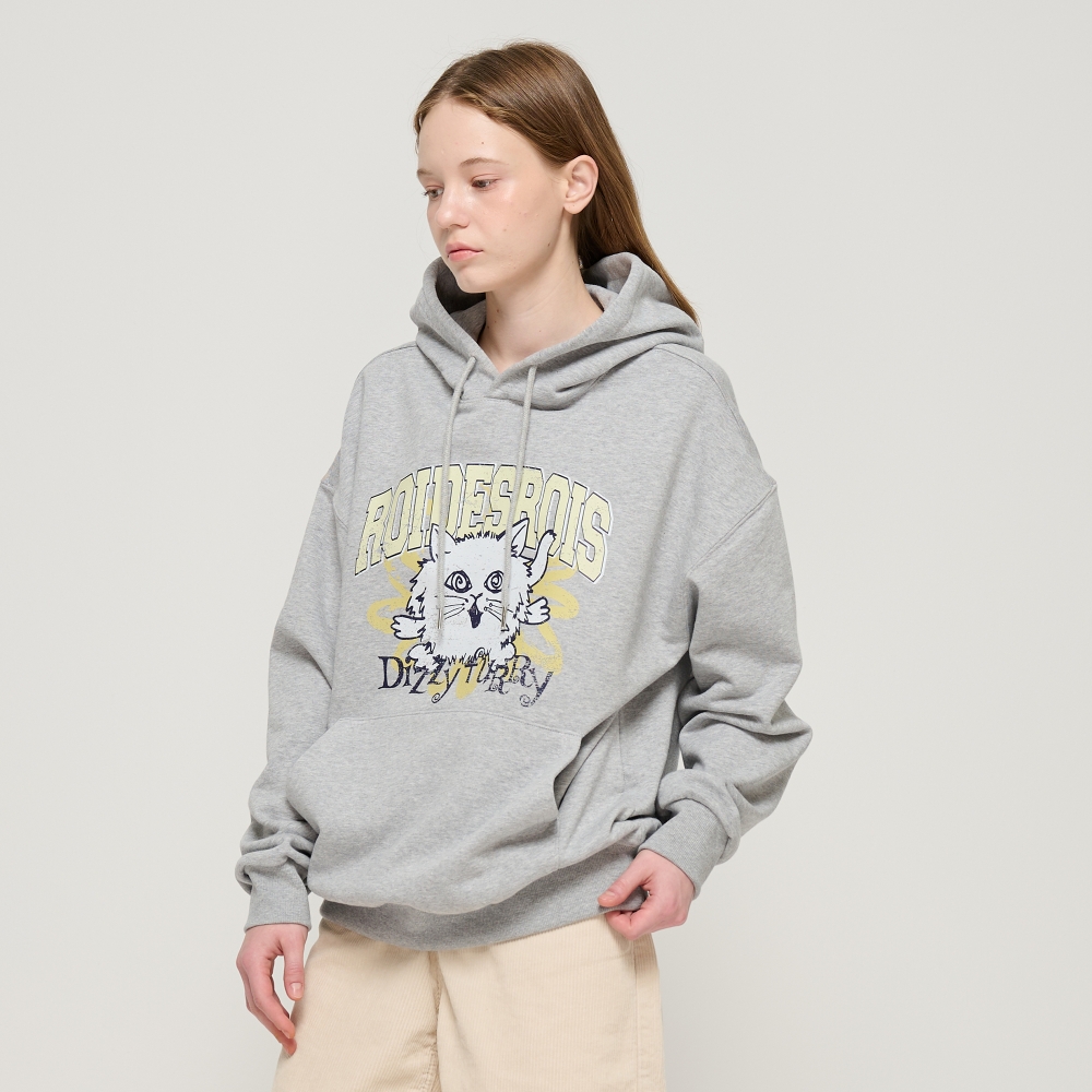 RIDING BIKE CAT 오버핏 후드 티셔츠 (라이트 그레이)