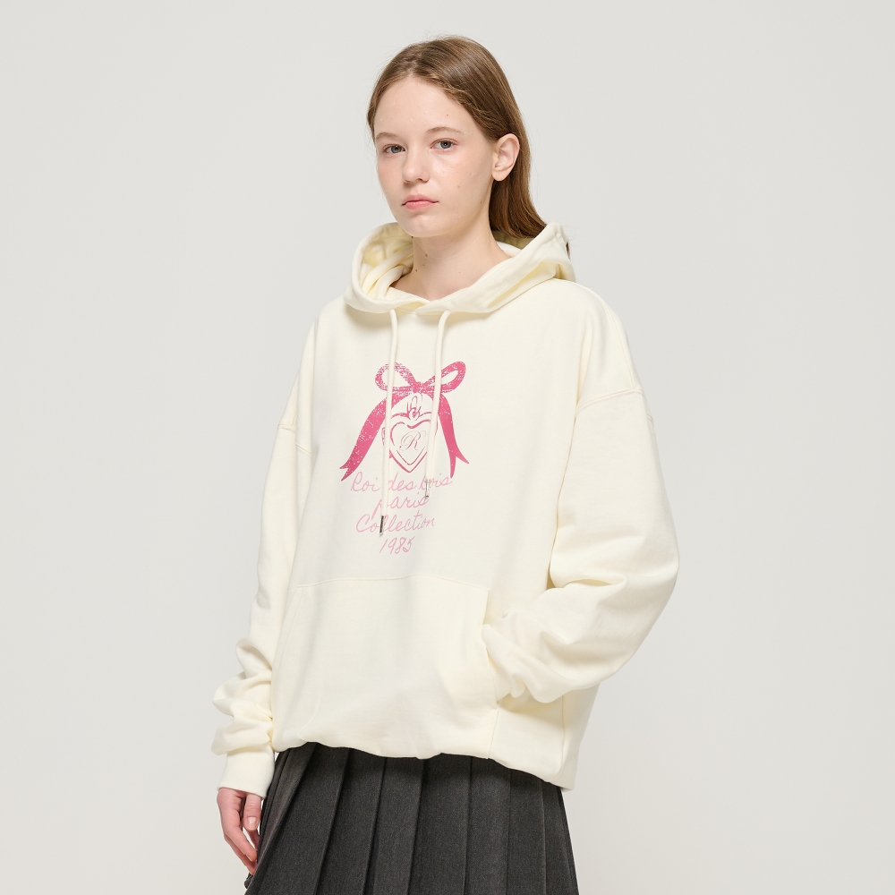 STAR CAT 오버핏 후드 티셔츠[화이트 메란지]
