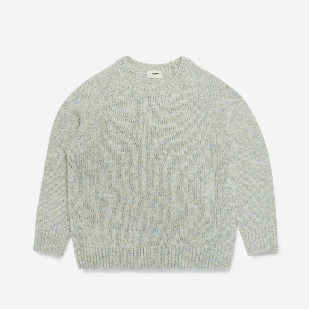 사선 플랩 형태의 비대칭 넥라인 디자인의 페미닌한 니트입니다.