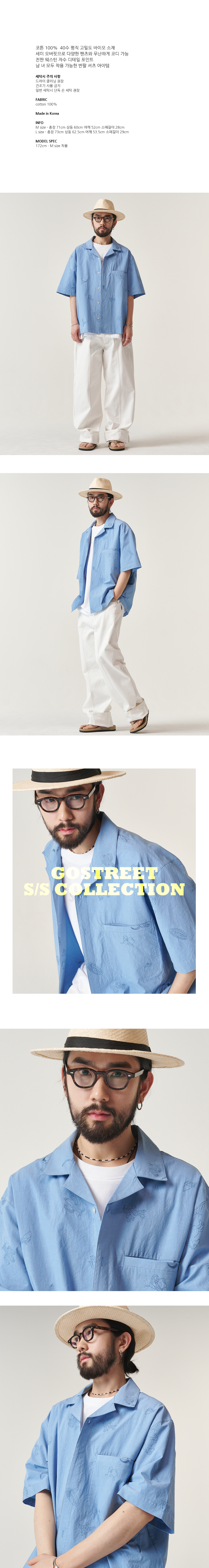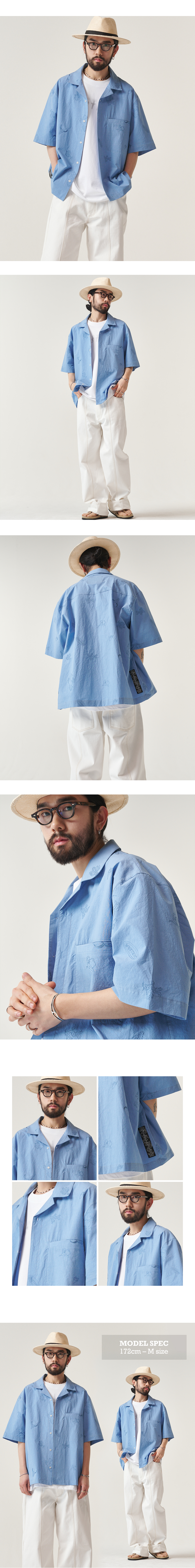 C Patch Oxford Short Sleeve Shirt White Sky Blue (Unisex)