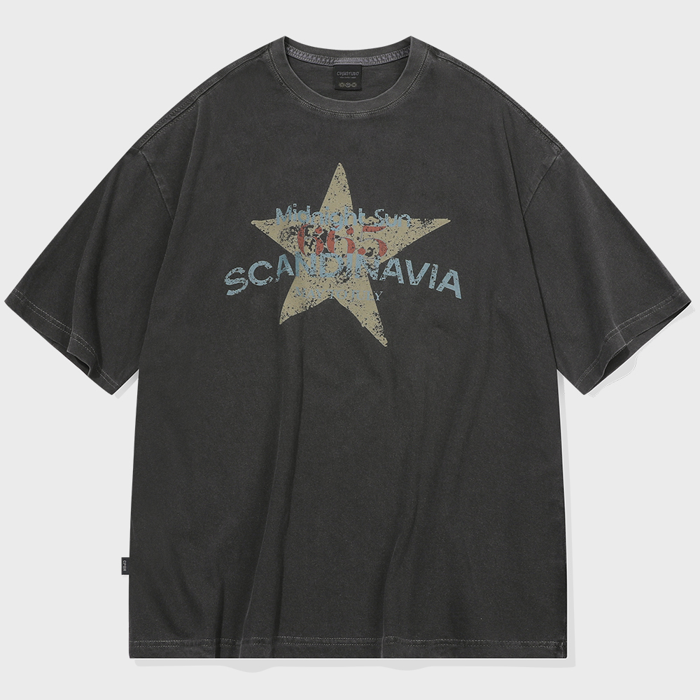 가벼운 소재로 그래픽이 특징인 스트릿 캐쥬얼 반팔티셔츠