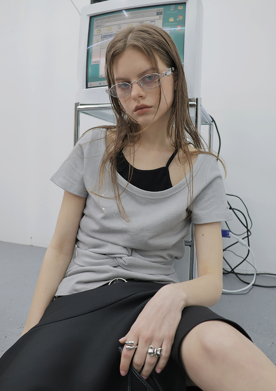 - 보트넥 반팔티로 여유로운 목선이 특징인 제품입니다.