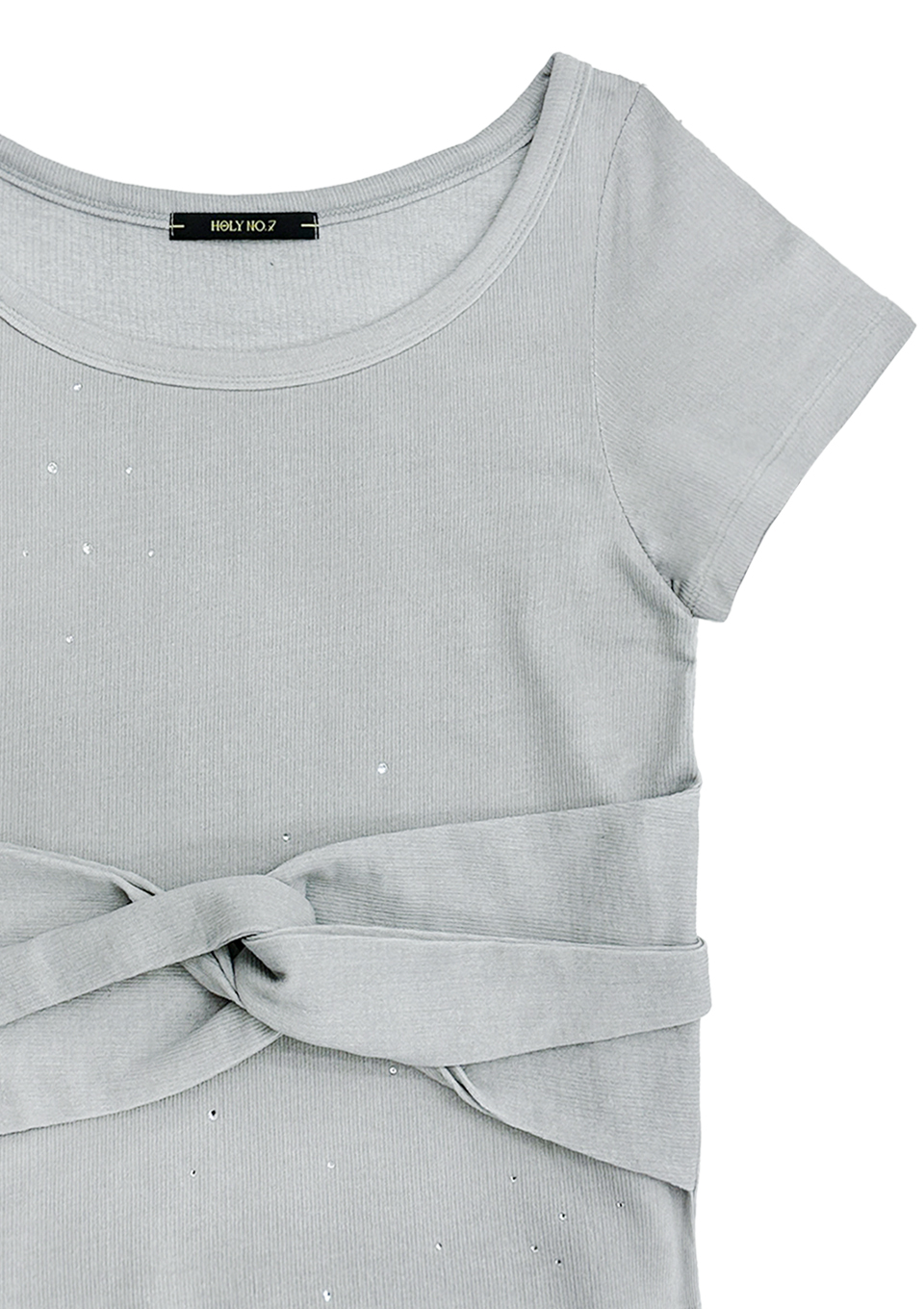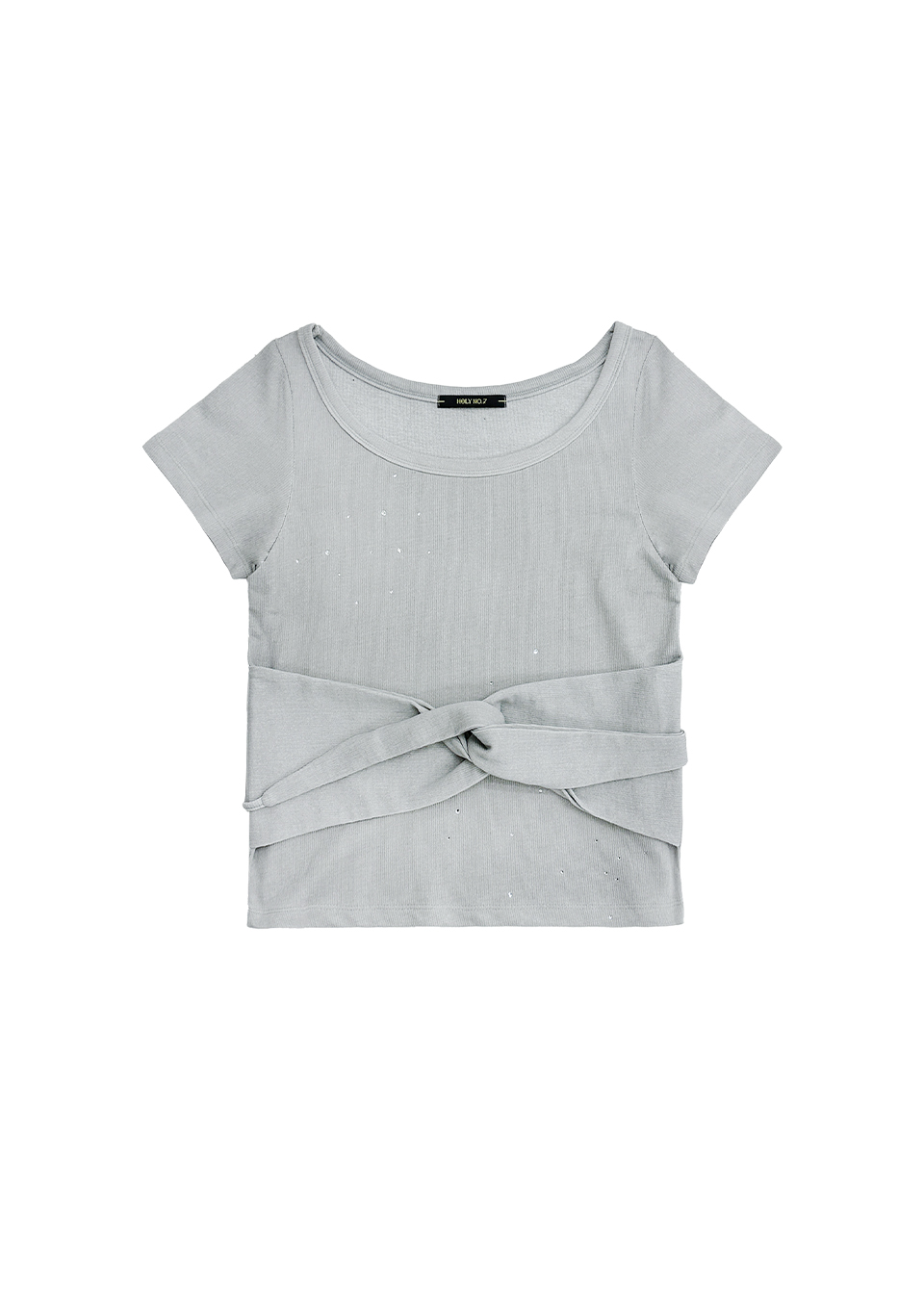 CUBIC WOMEN'S TIE SHORT SLEEVE T-SHIRT_LIGHT GRAY