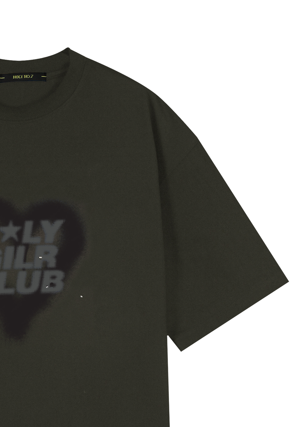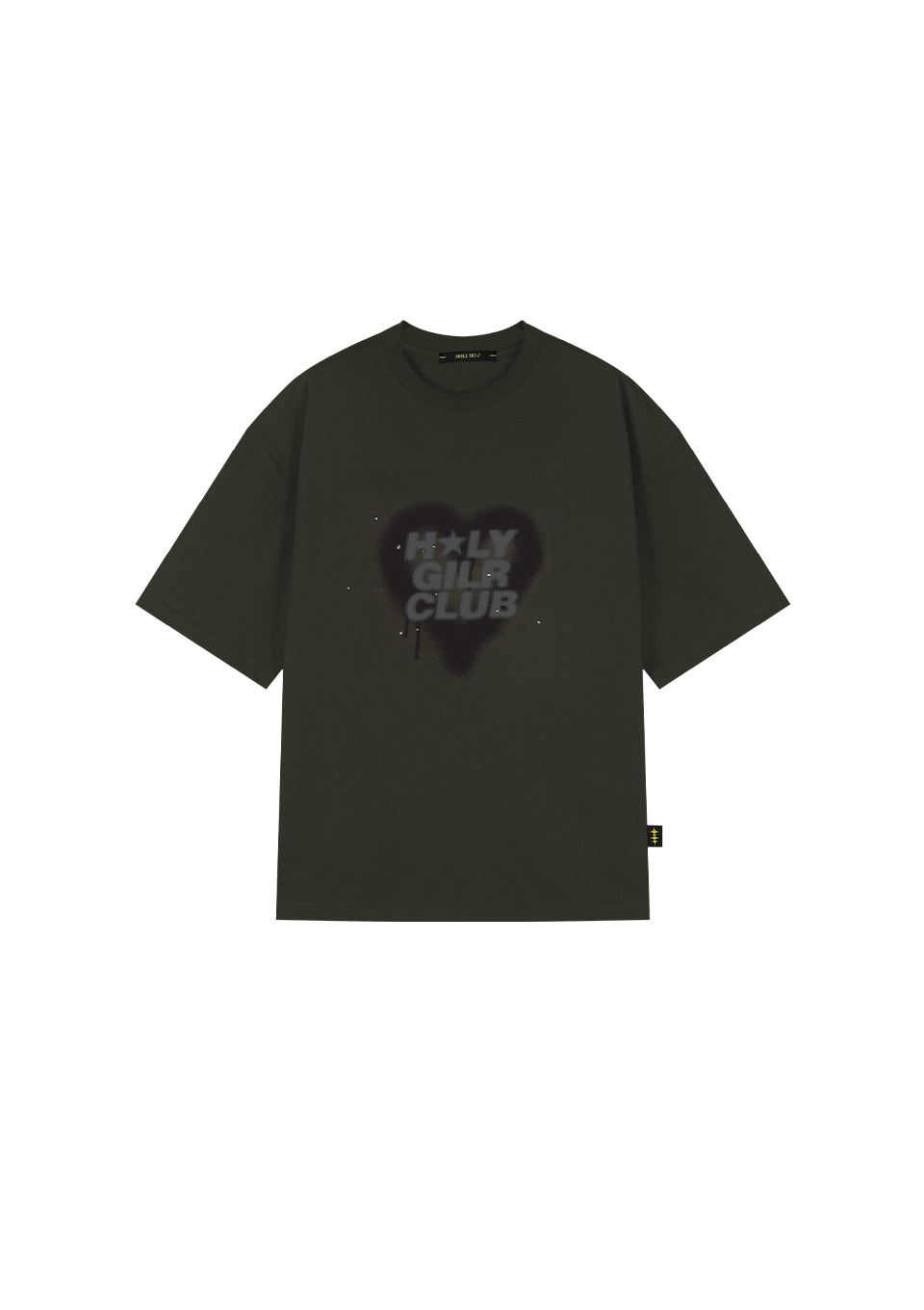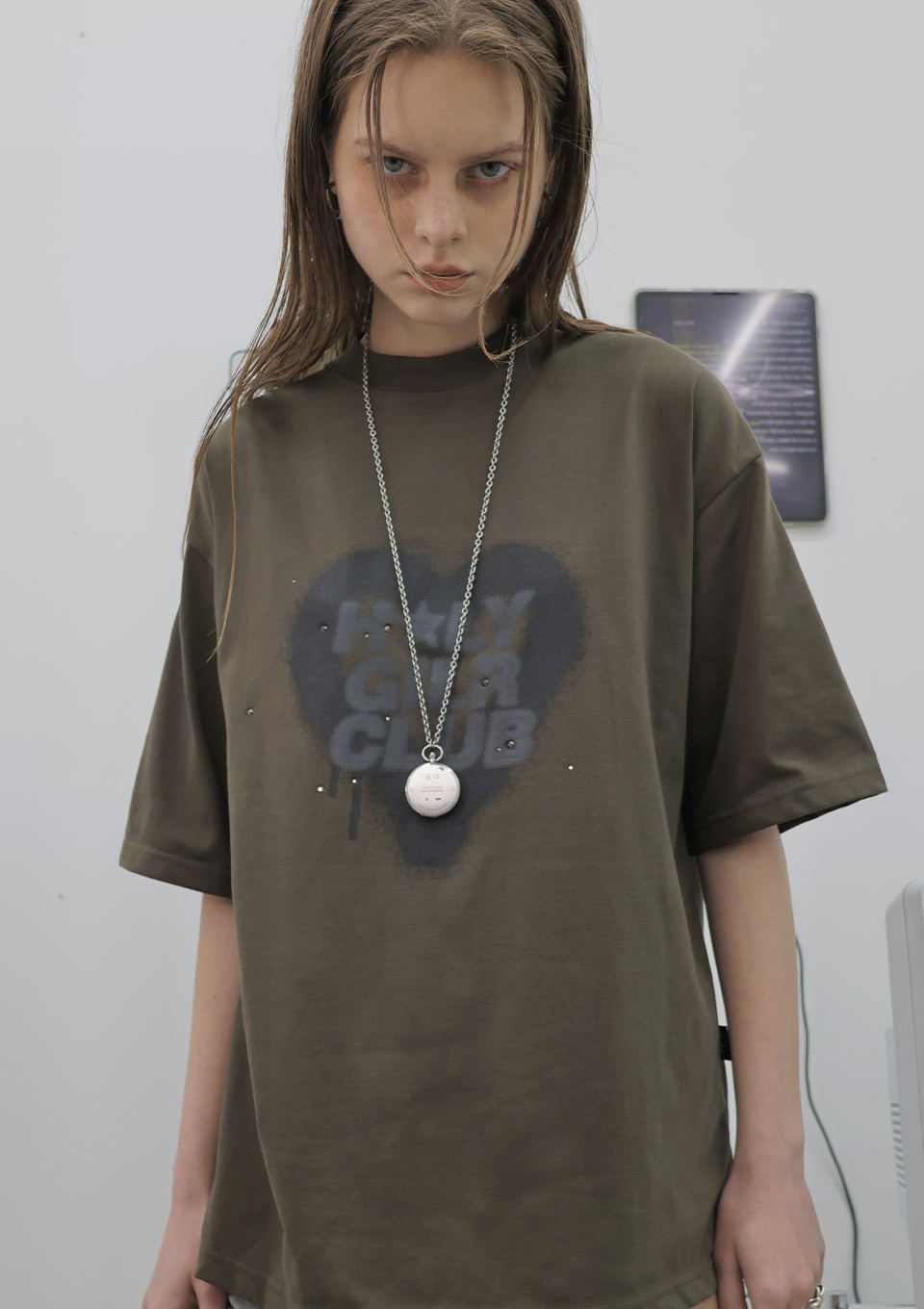 OVERSIZED HIP HOP DANCE STUDIO HEART GRAPHICS SHORT SLEEVE T-SHIRT_KHAKI