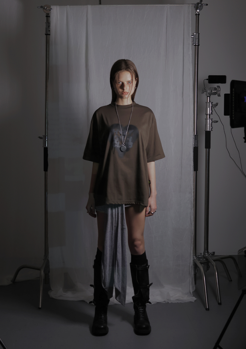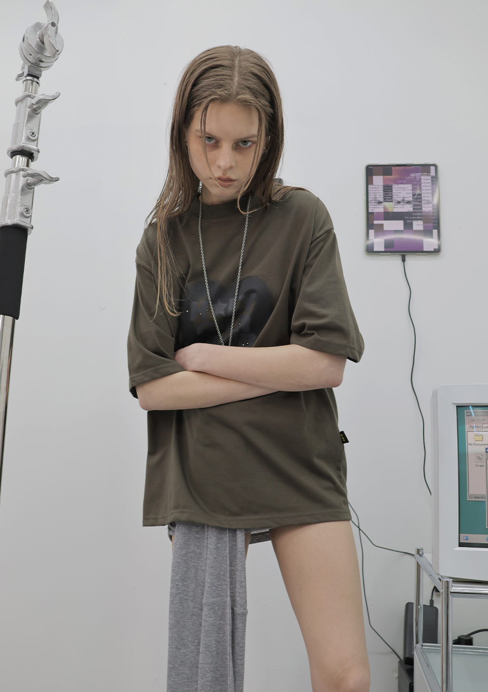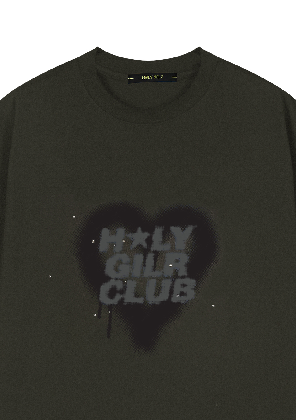 OVERSIZED HIP HOP DANCE STUDIO HEART GRAPHICS SHORT SLEEVE T-SHIRT_KHAKI