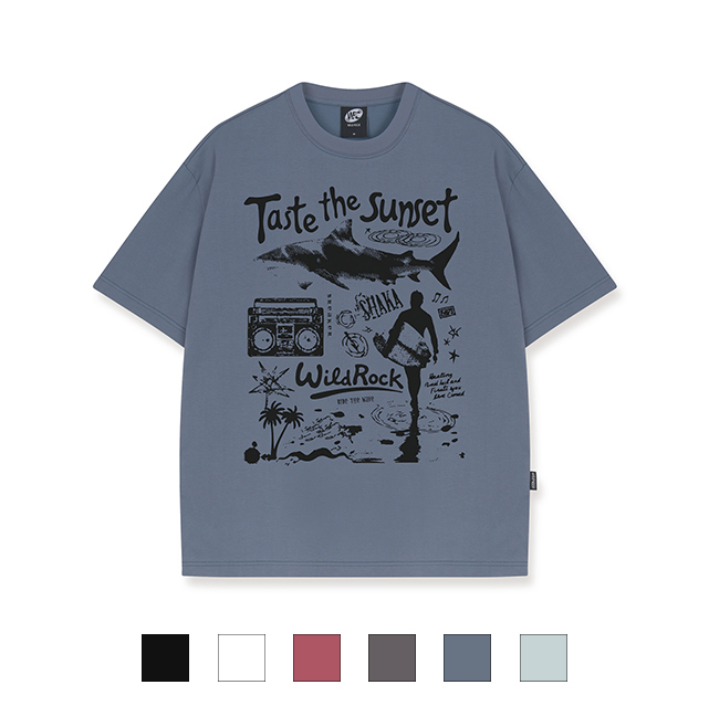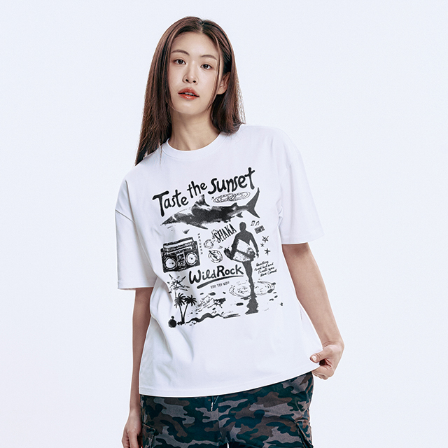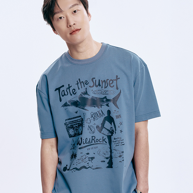 가벼운 소재로 그래픽이 특징인 스트릿 캐쥬얼 반팔티셔츠