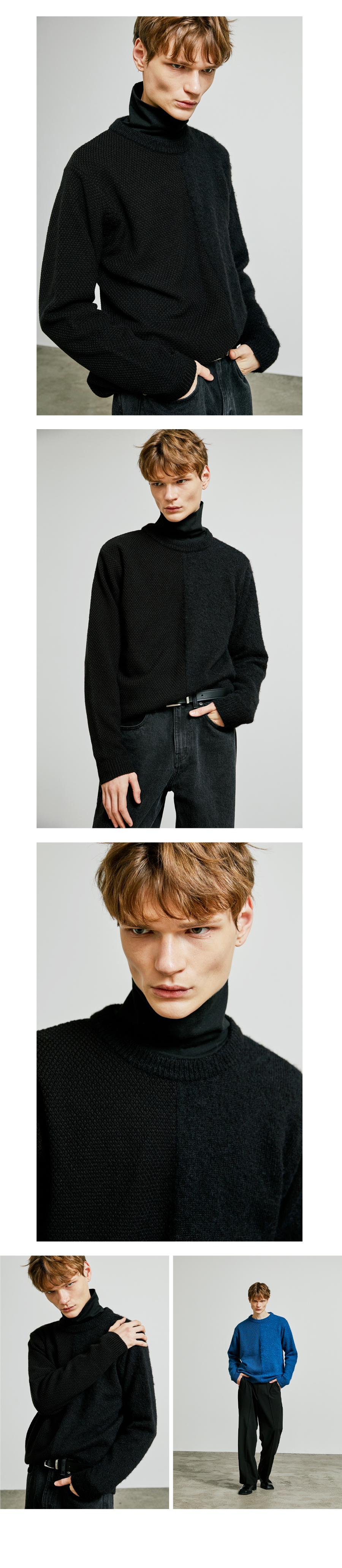 Two-tone Winter Stars Round Neck Sweater_BLACK
