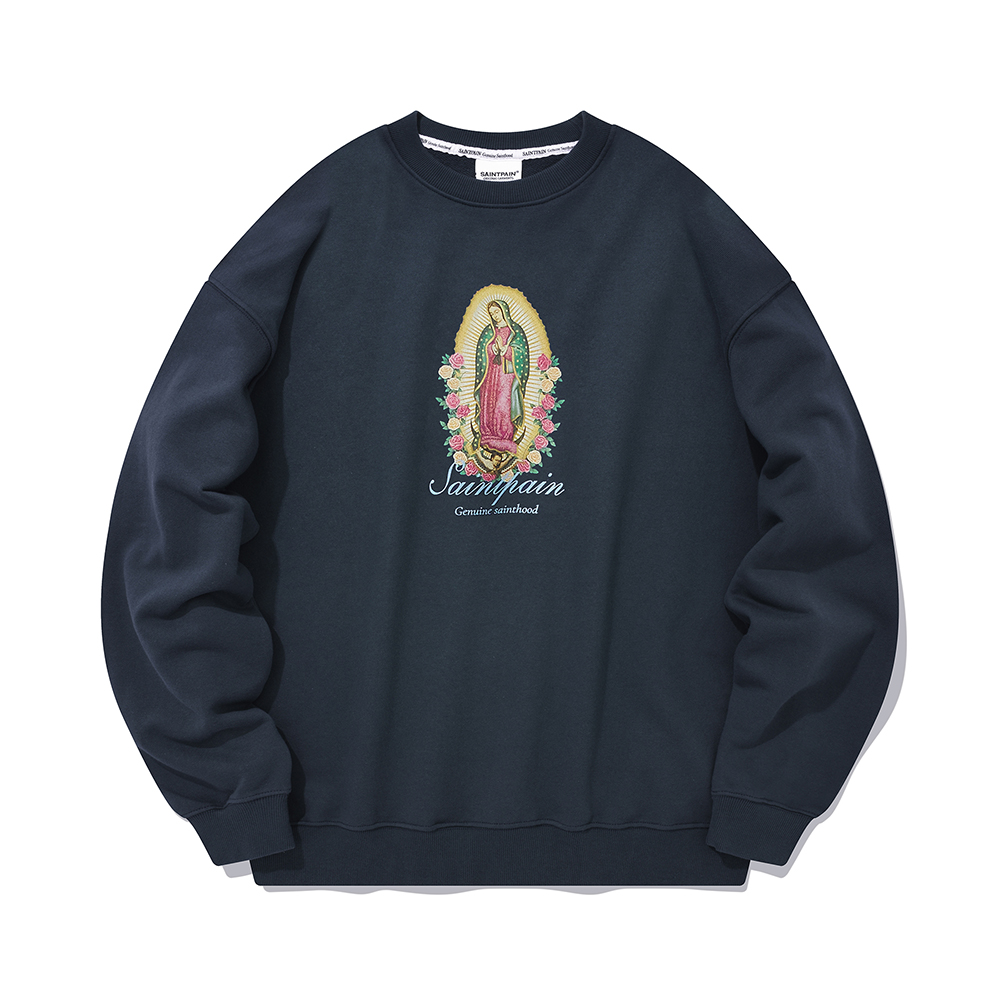모노 컬러의 장미 문양이 들어간 오버핏 스웨트셔츠 입니다