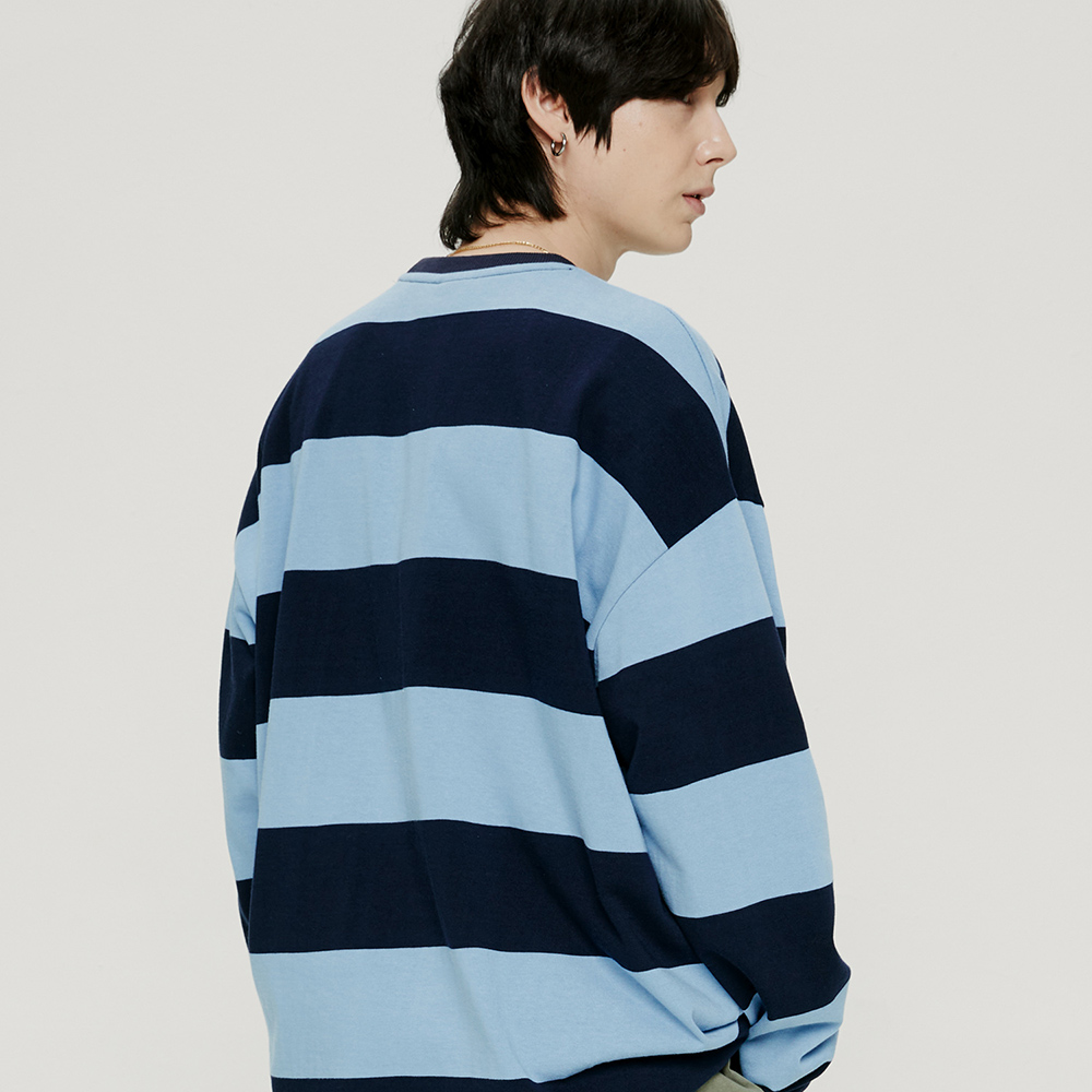 오버핏 스트라이프 체인 로고 롱슬리브리스 티셔츠 버건디(FCF3TS641M)