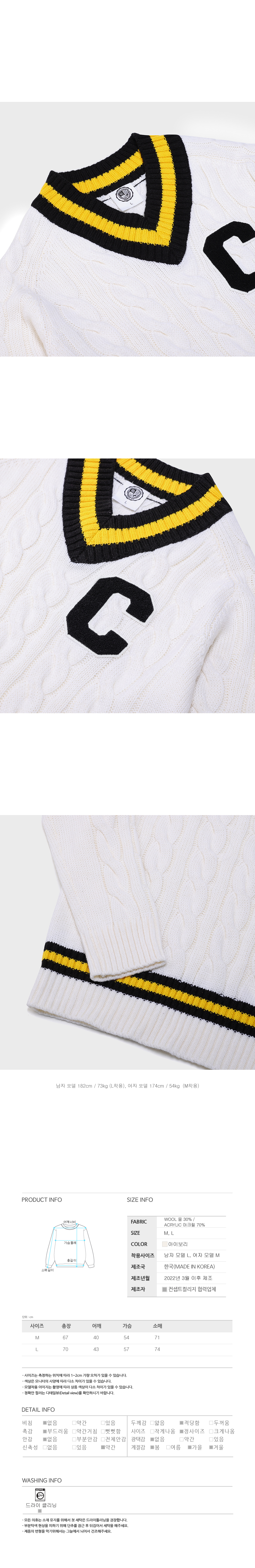 [컨셉트 컬리지] C 패치 아이보리 프레피 브이넥 울 니트 (남녀공용)