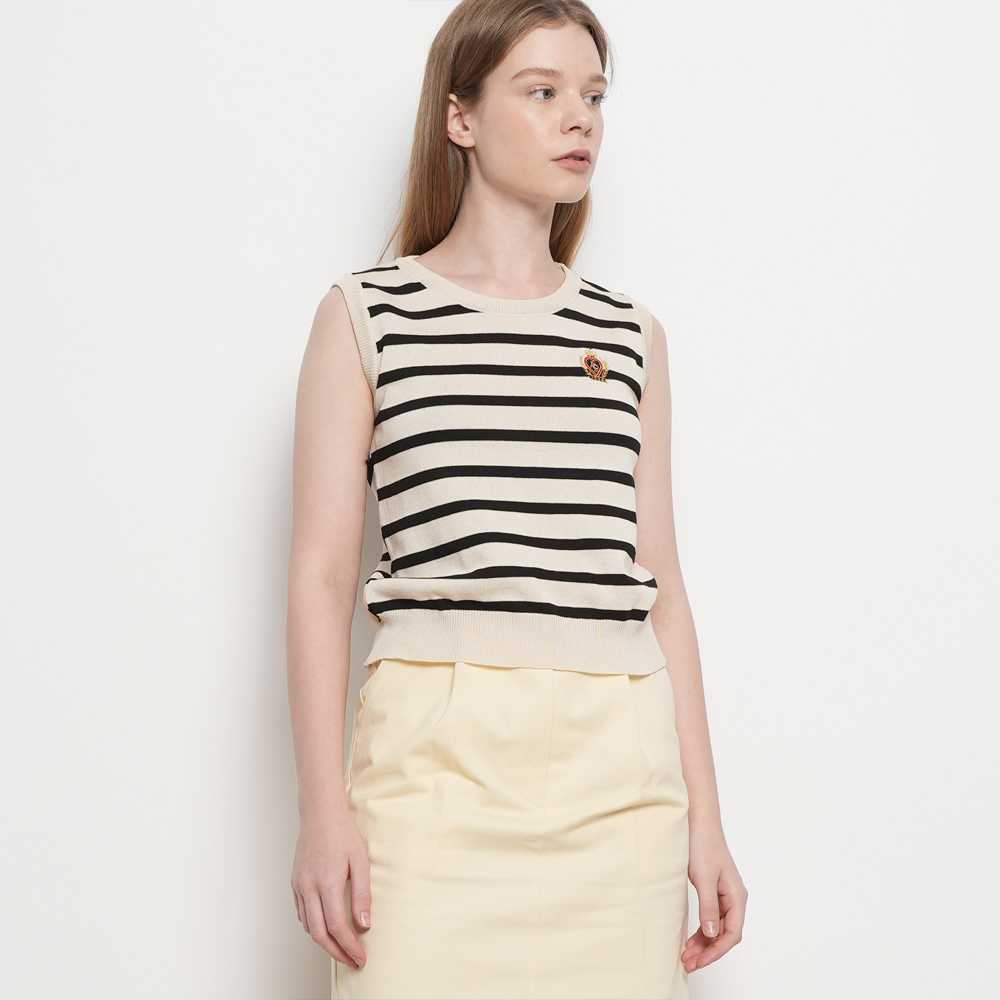 깔끔한 스트라이프와 버튼 디테일로 세련된 매력을 더한 슬리브리스 탑