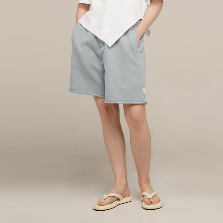 친환경 리사이클 소재의 루즈한 4부 기장 에센셜 스웻 쇼츠