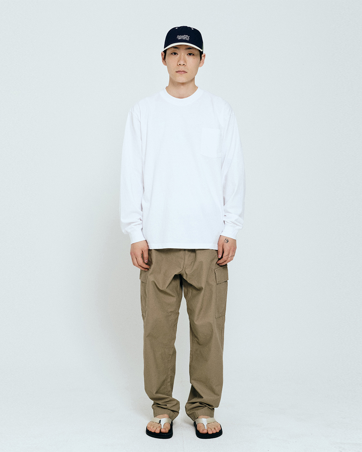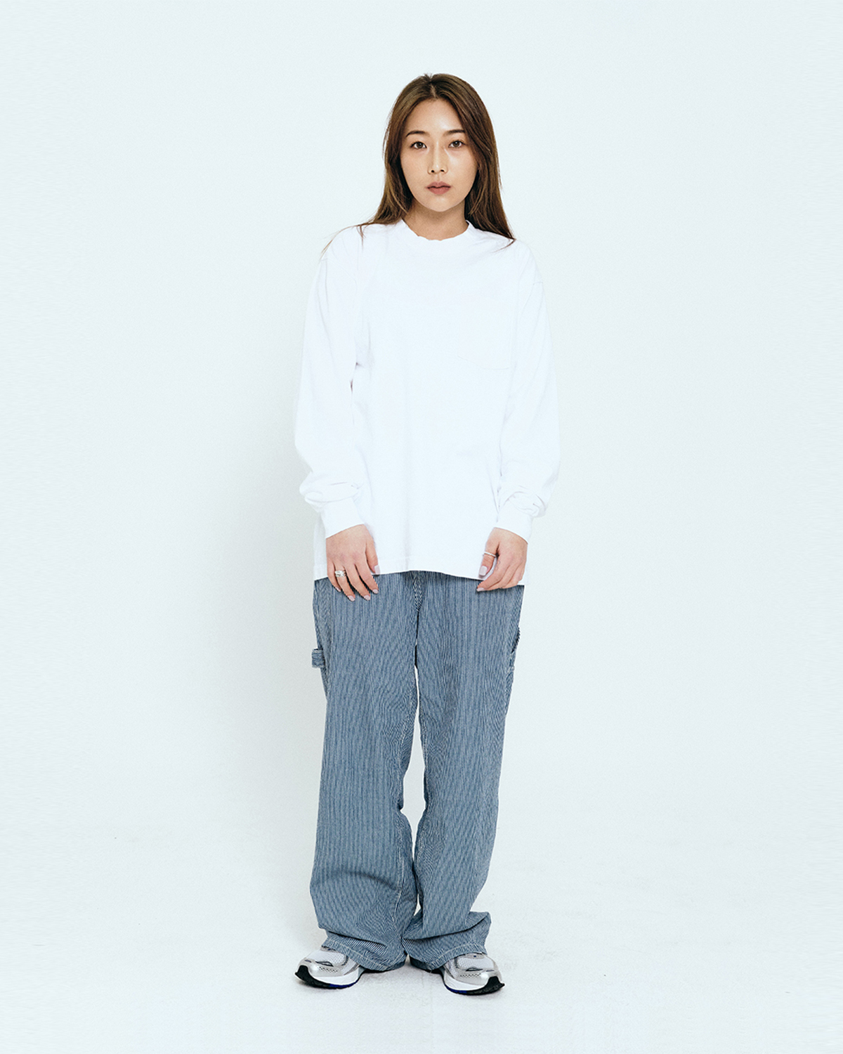 오버핏 스트라이프 체인 로고 롱슬리브리스 티셔츠 머스타드(FCF3TS641M)