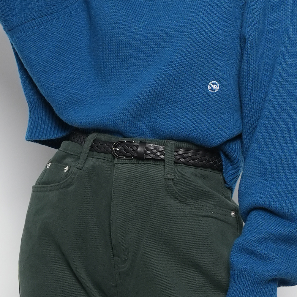 M23 Narrow Square Buckle Fake Leather Belt Black