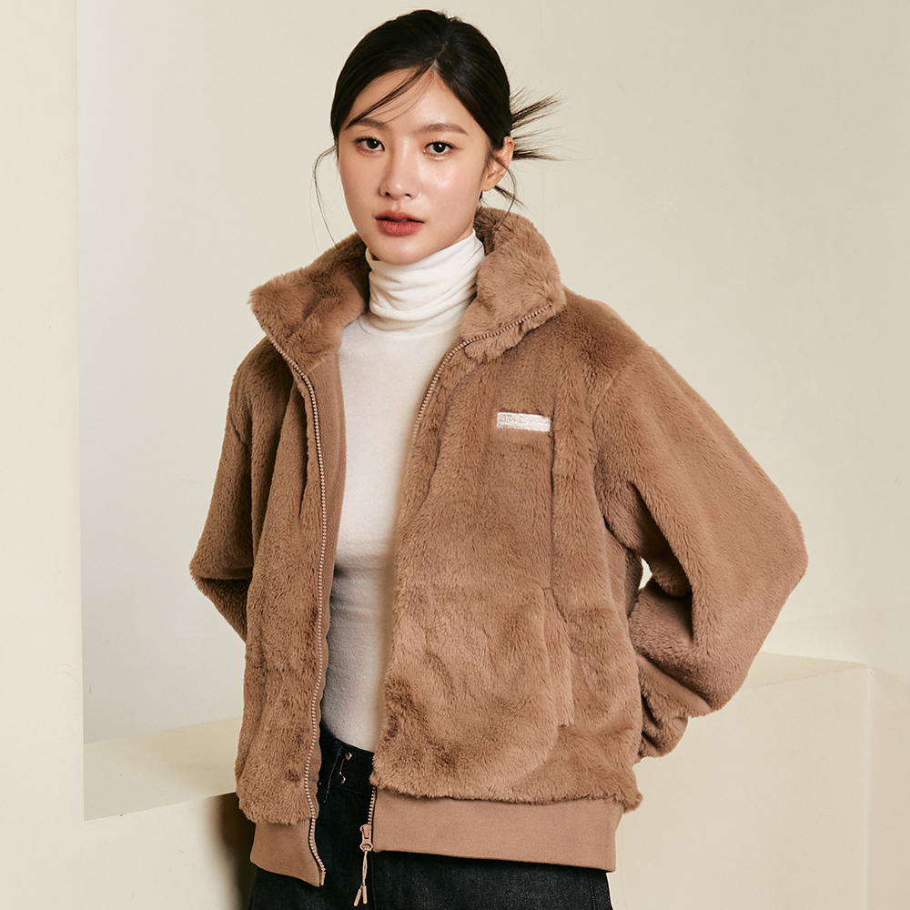 Faux Fur Long Mustang Jacket Brown