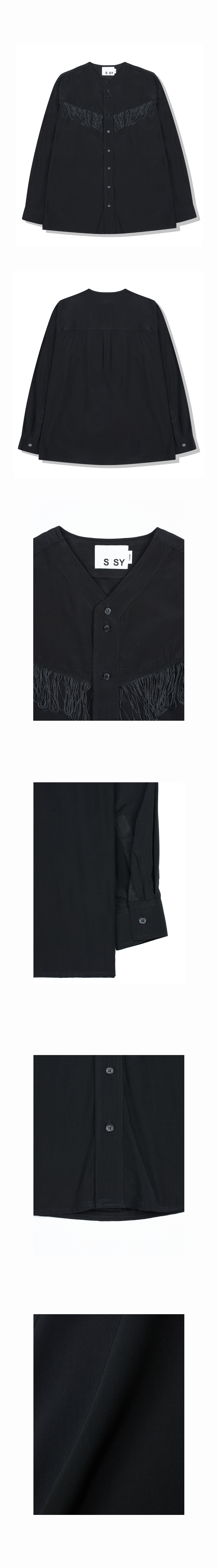 * 스탠다드 칼라 모양이 아닌 V넥, 전면부 프린지 디테일이 특징
