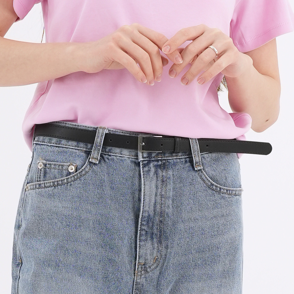 M23 Narrow Square Buckle Fake Leather Belt Black