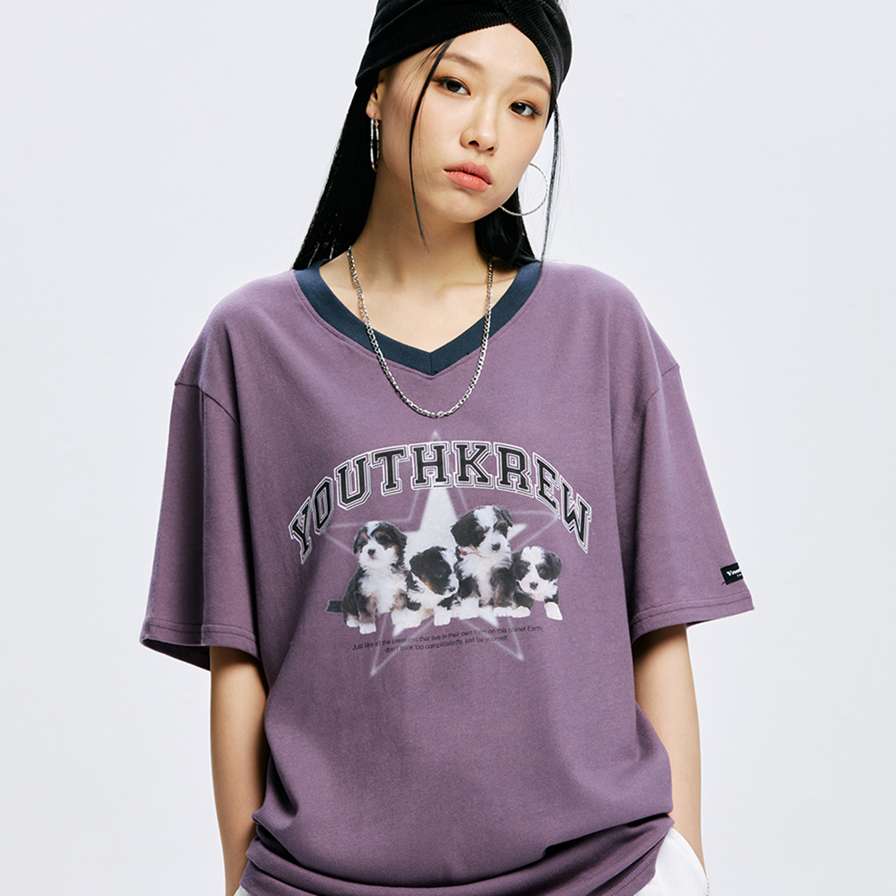 유니크한 고양이 로고의 오버핏 피그먼트 반팔 티셔츠