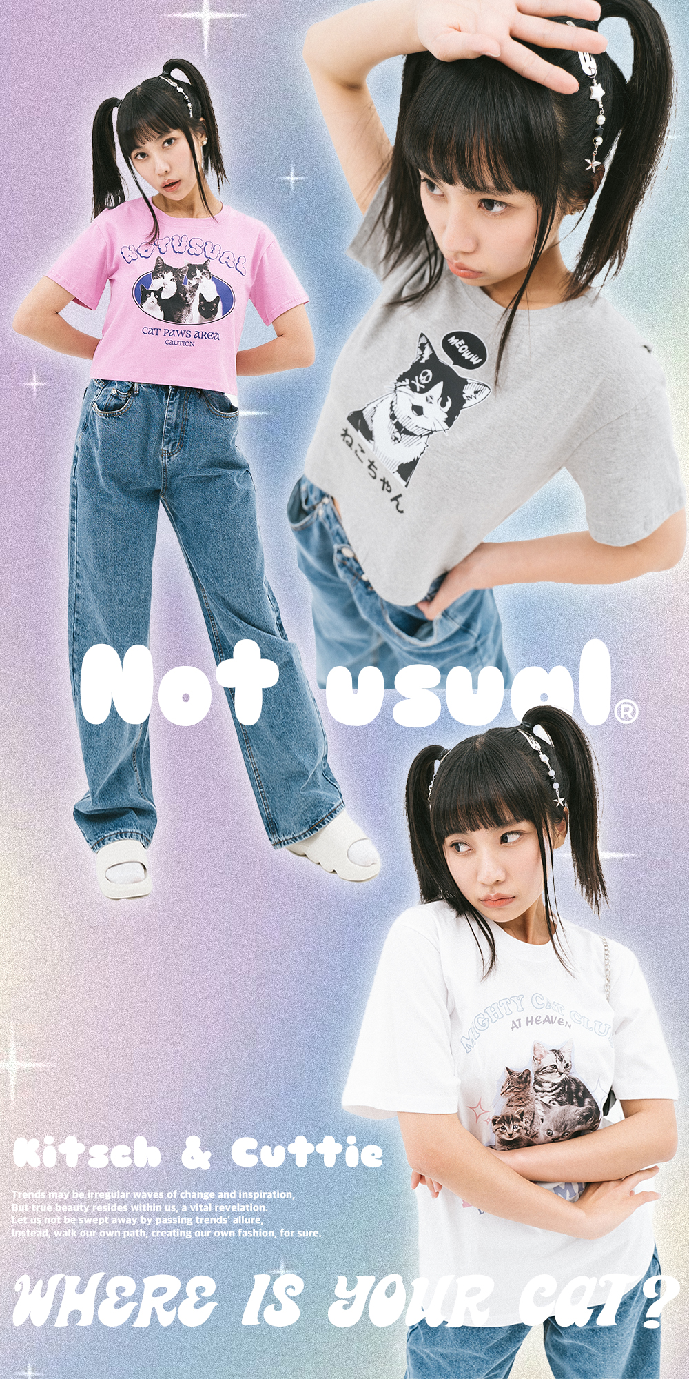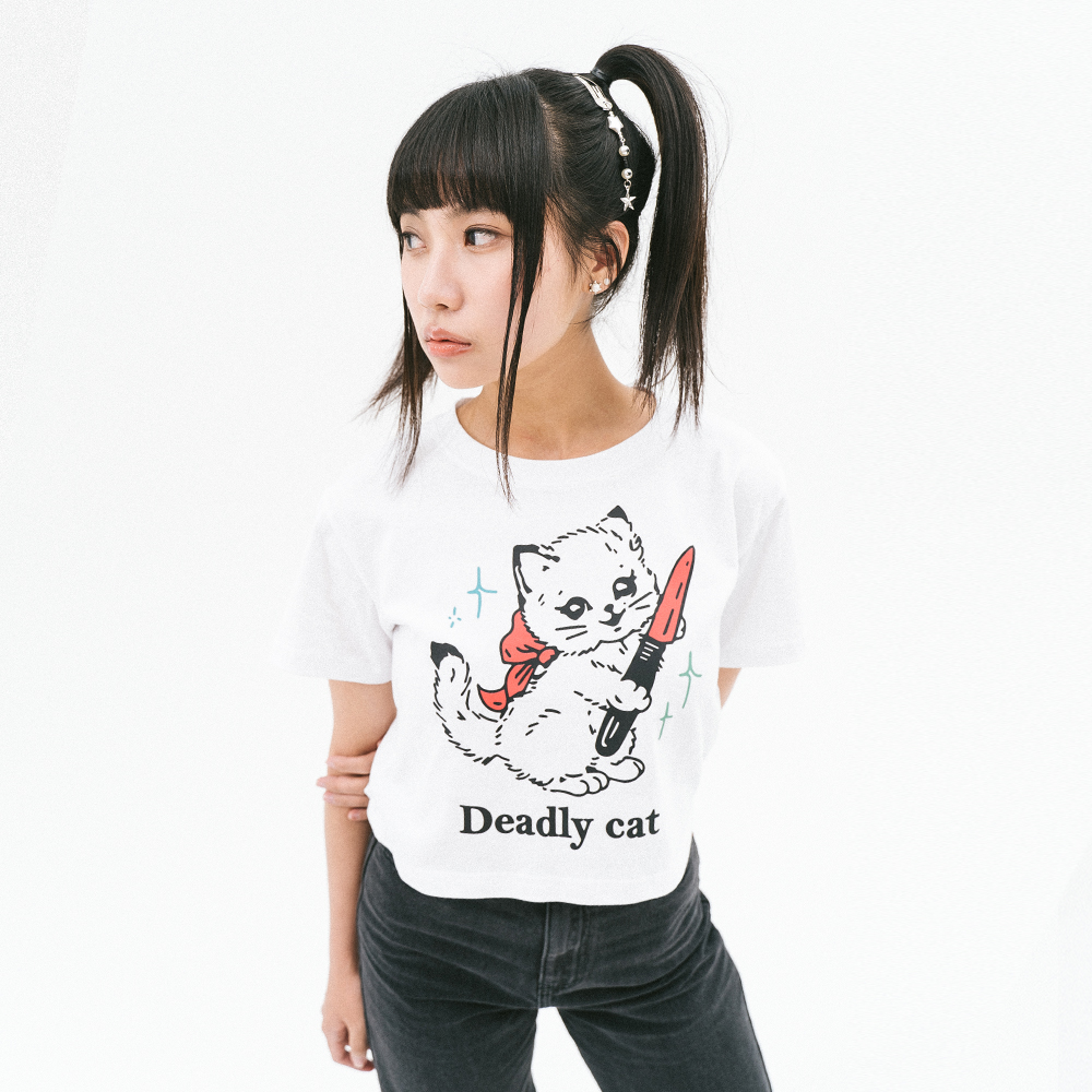 Aroof Cat Crop Tee - Cream