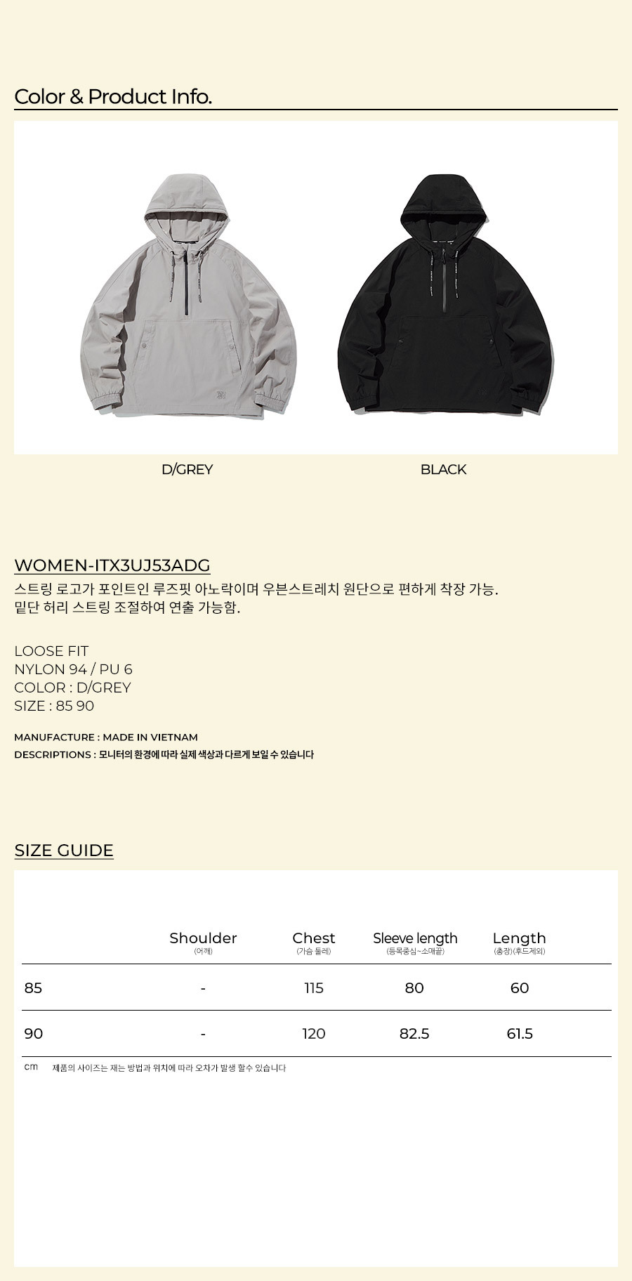 미니포켓과 캥커루 포켓으로 수납력을 높인 오버핏 후드 아노락-네이비/그린