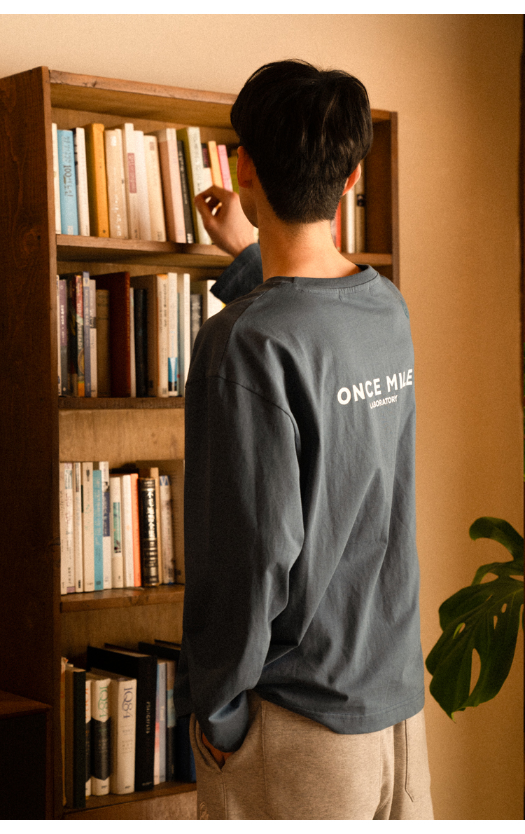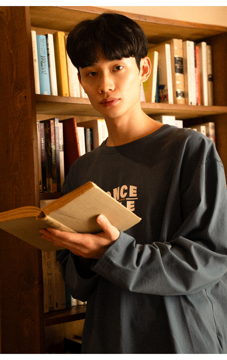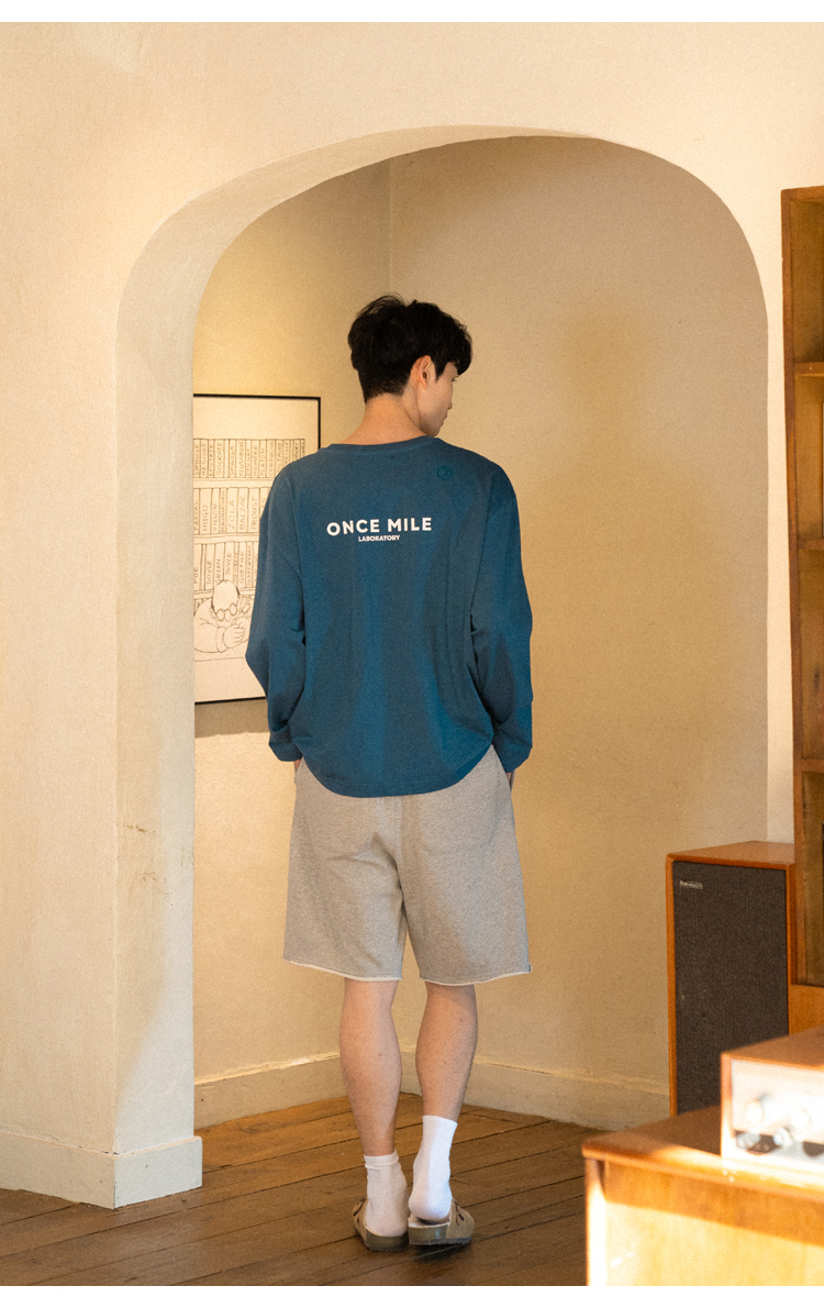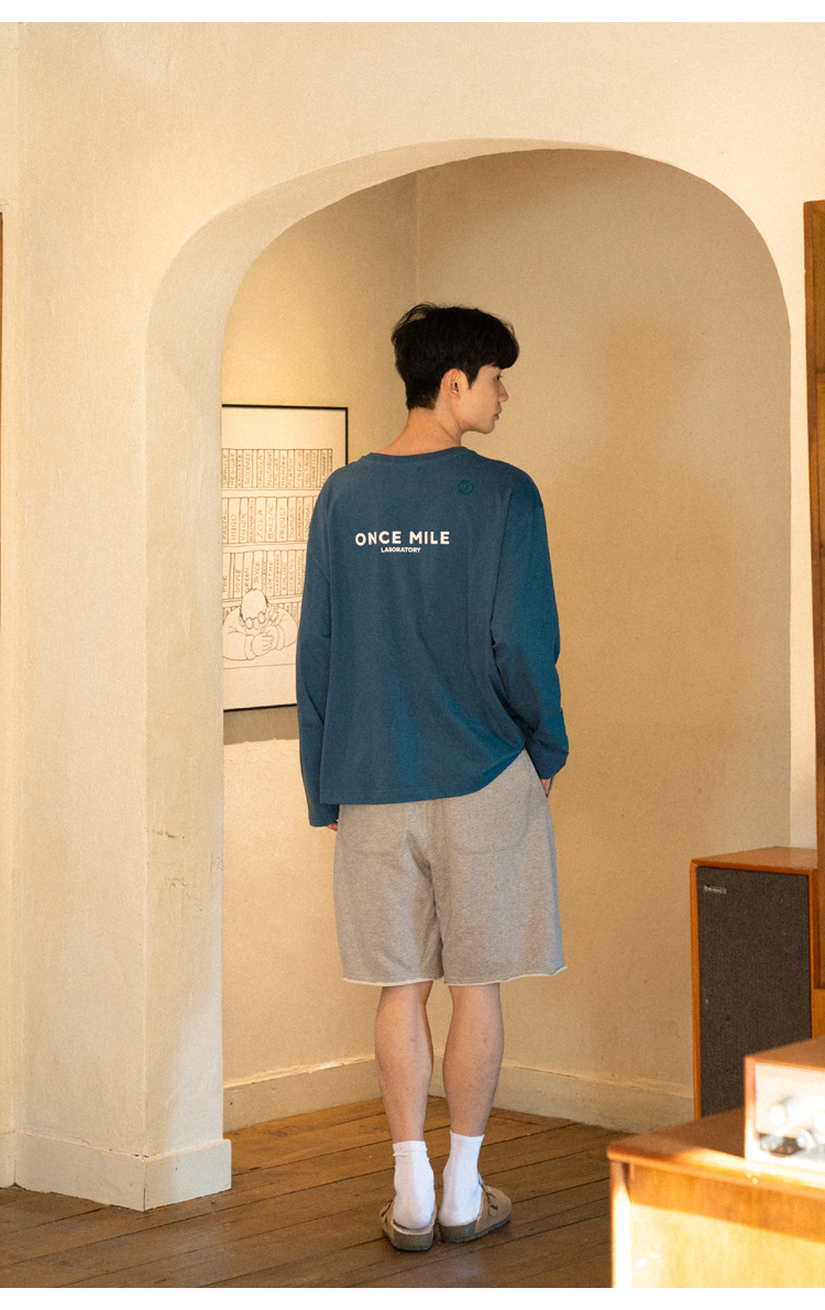 메쉬 원단으로 , 소매따라 심플한 레터링 오버핏의 긴팔 티셔츠