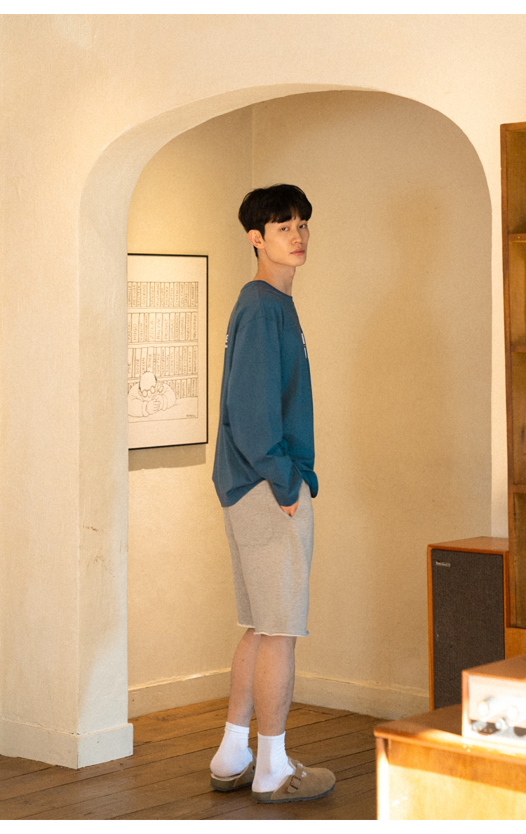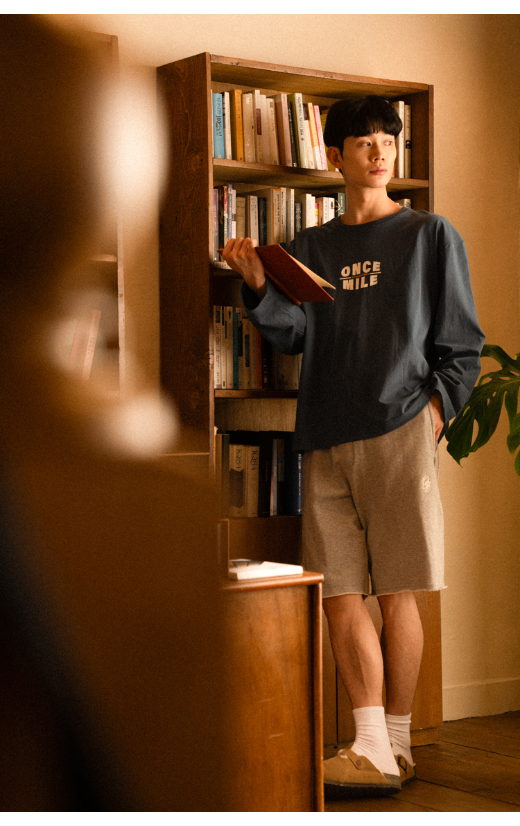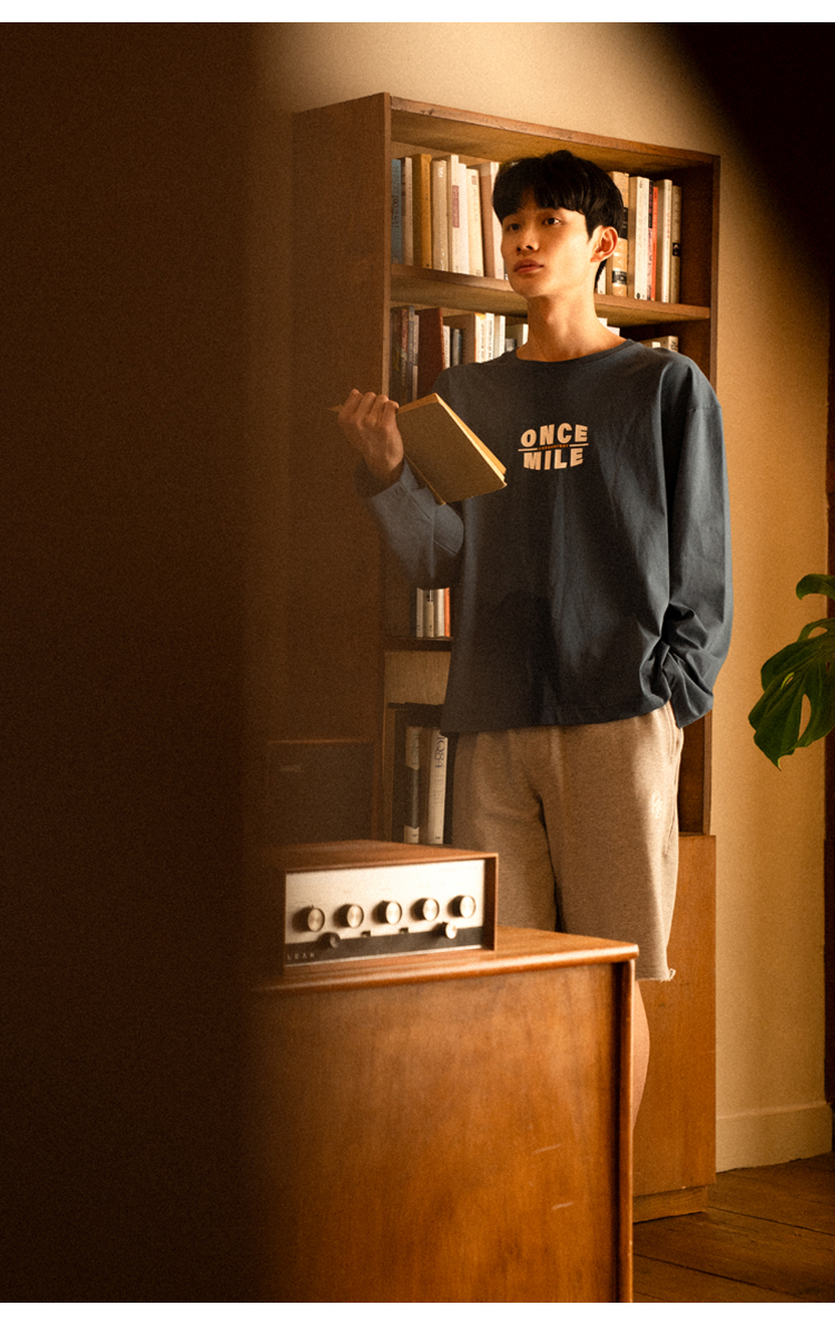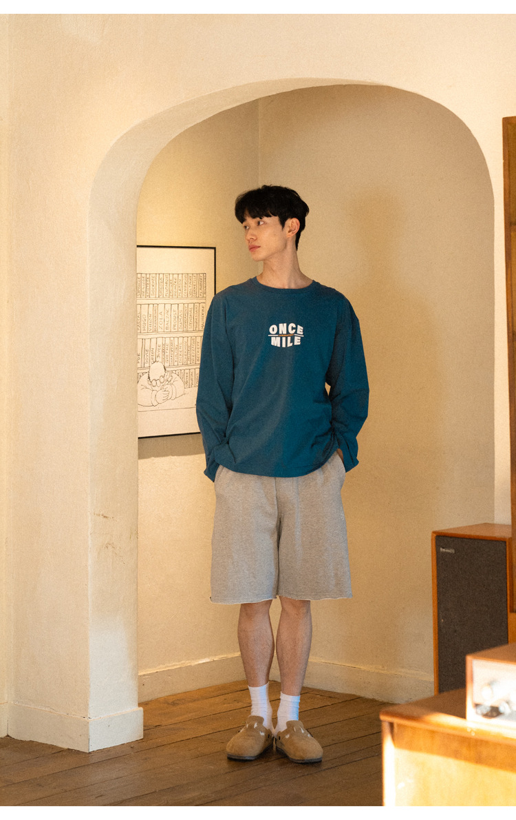 메쉬 원단으로 , 소매따라 심플한 레터링 오버핏의 긴팔 티셔츠